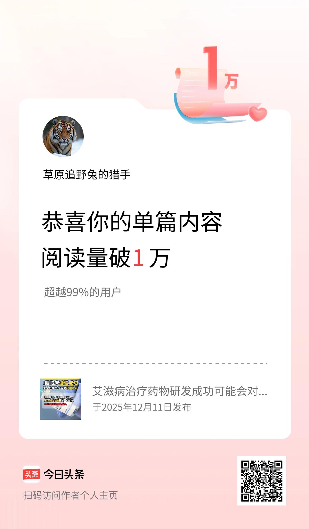 单篇内容获得阅读量破1万啦!