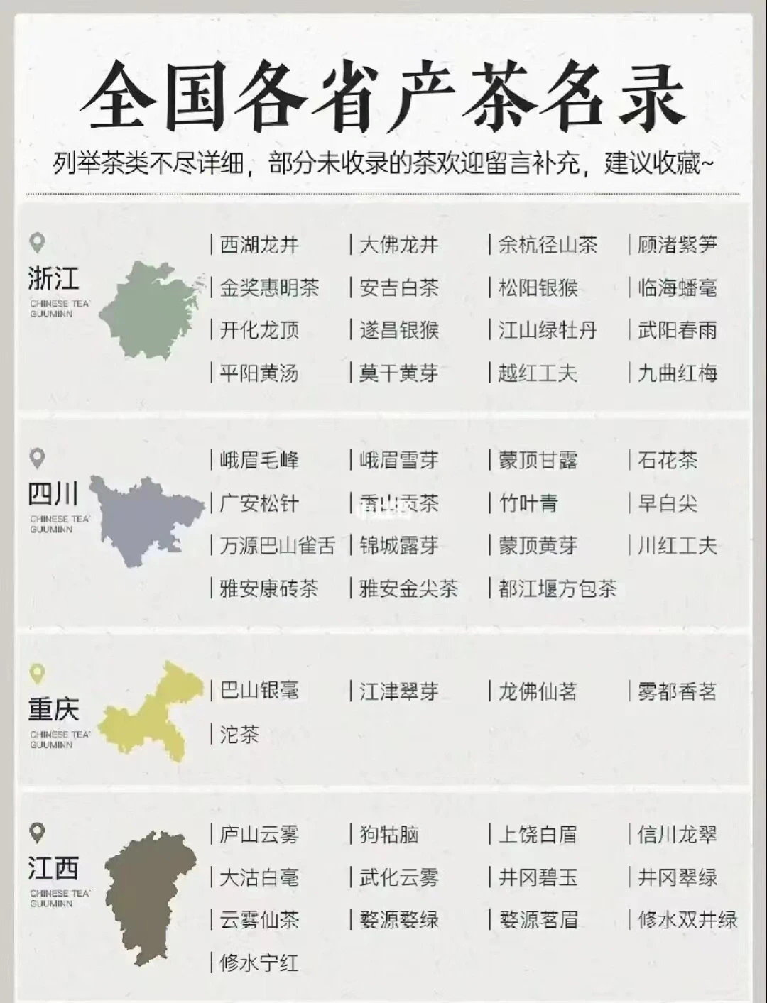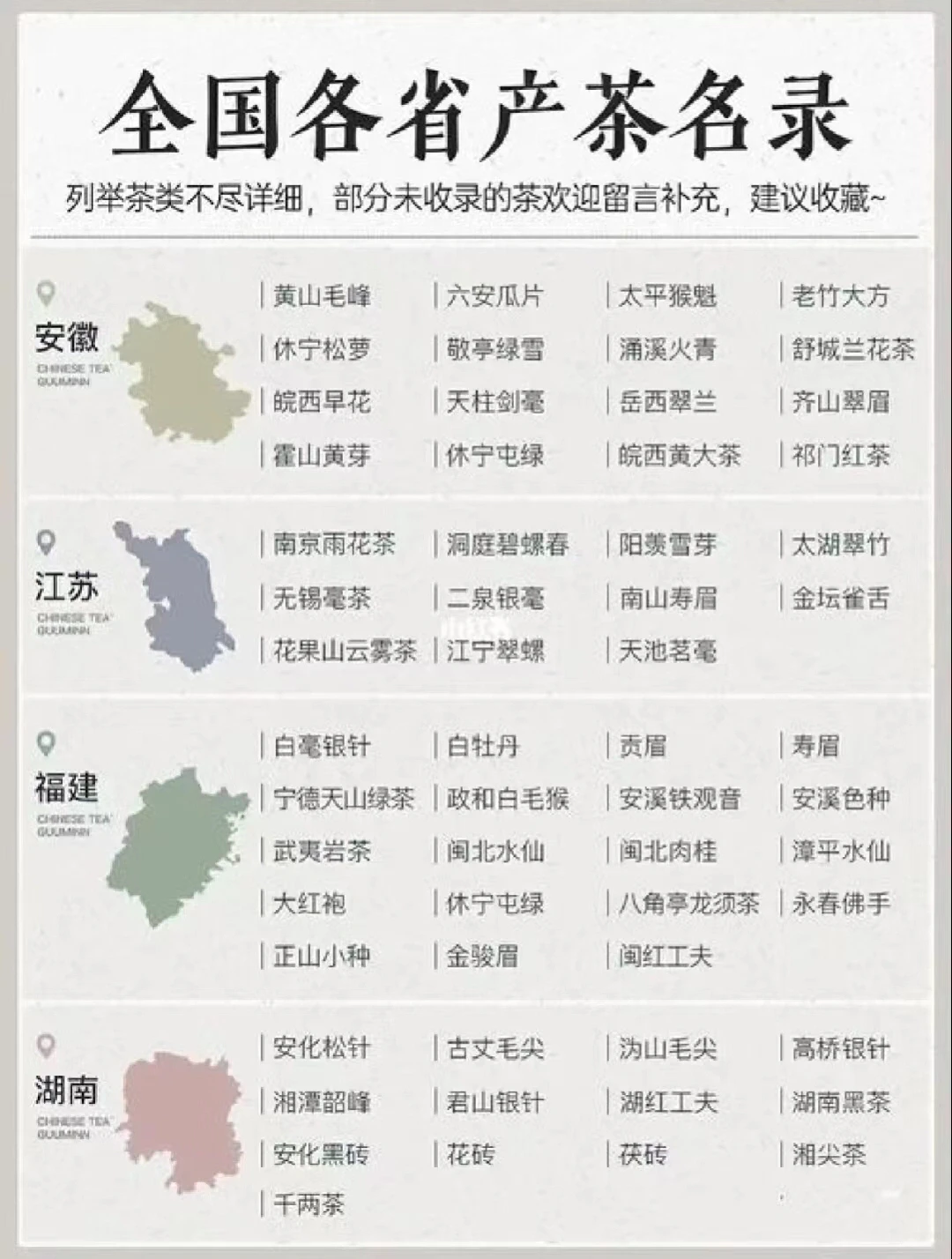 ·第一,绿茶。绿茶是不发酵茶,所以说它的茶性偏寒。我们熟知的碧螺春、西湖龙井、六安瓜片太平猴魁都是绿茶的代表茶,也是长期上榜的中国十大名茶,可见绿茶的江湖地位。