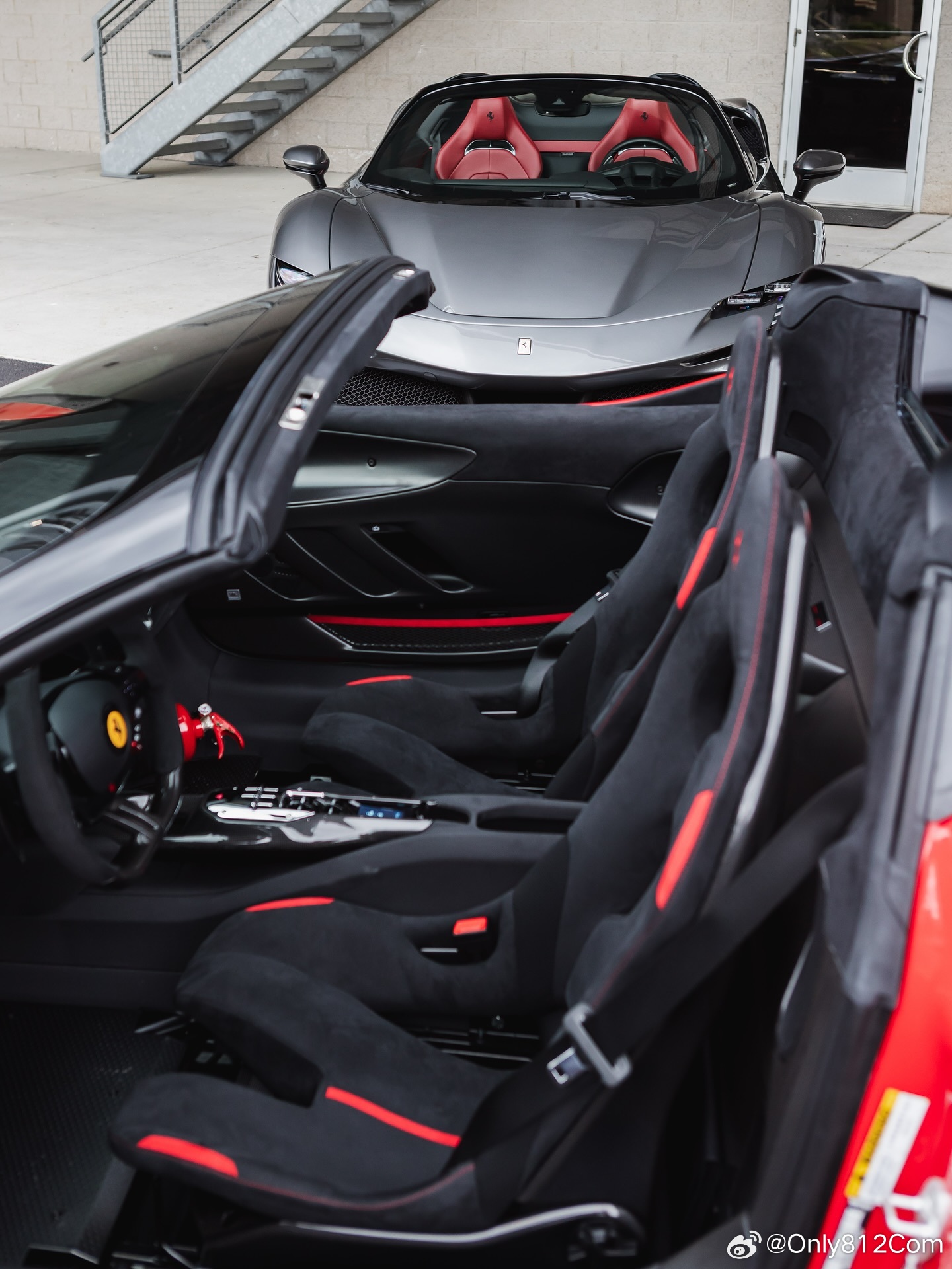 外观配色为Rosso Corsa,搭配碳纤维轮毂,默认的Nero Alcantara搭配部分与车身颜色对应的红色细节点缀。交付于位于美国底特律的Cauley Ferrari of Detroit,这也是这家经销商的第一台SF90 XX Spider.图片来自