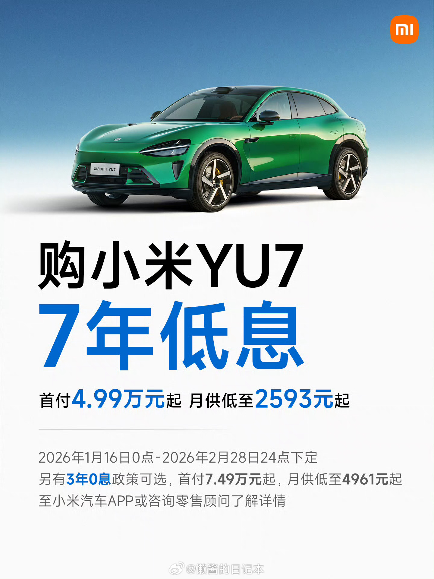 雷军直播 小米汽车正面刚特斯拉啊,小米YU7也搞7年低息;双零重力座椅,限时返场:2月28号24点之前,小米YU7全系赠送。