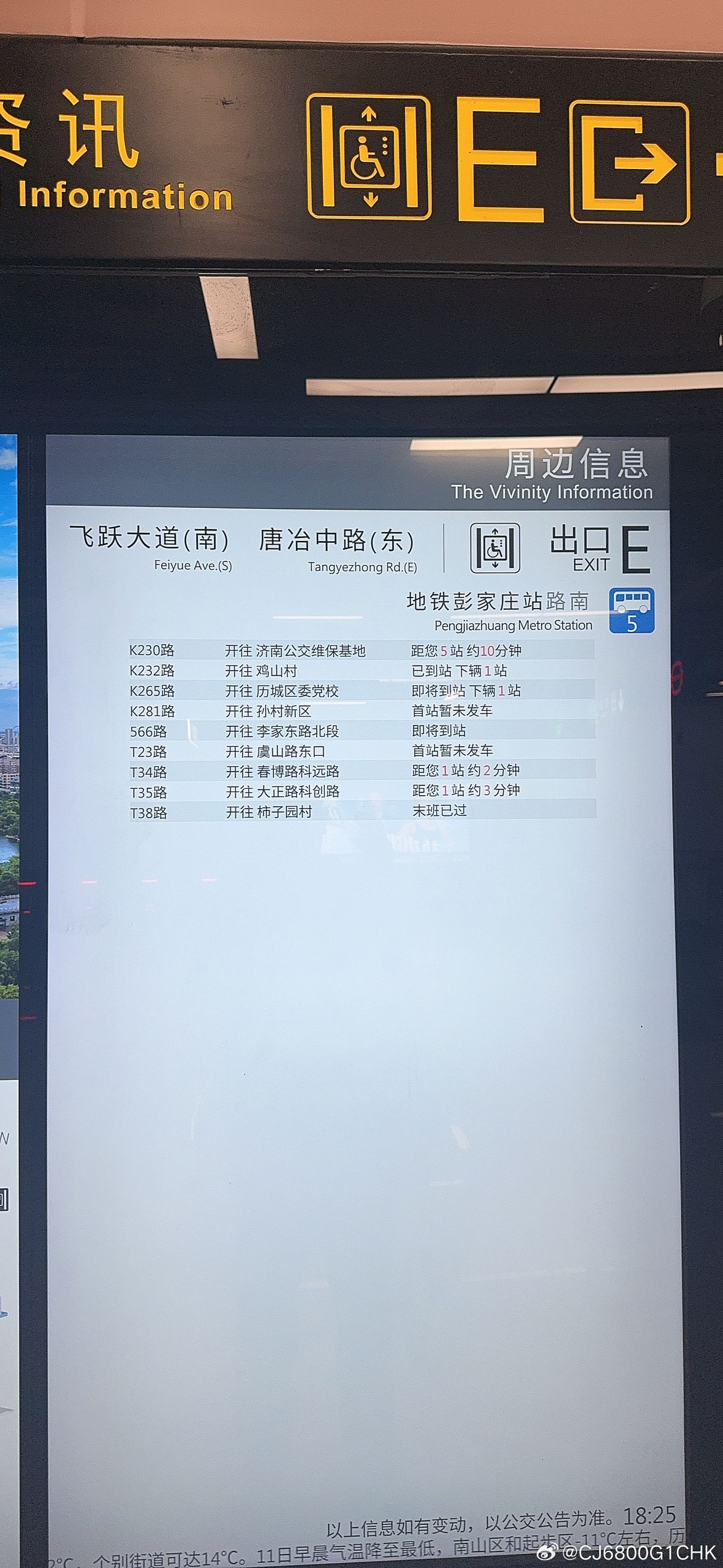 济南二期新开通的地铁站屏幕显示附近公交实时之后,公交站牌也开始显示附近地铁站的地铁到达时间