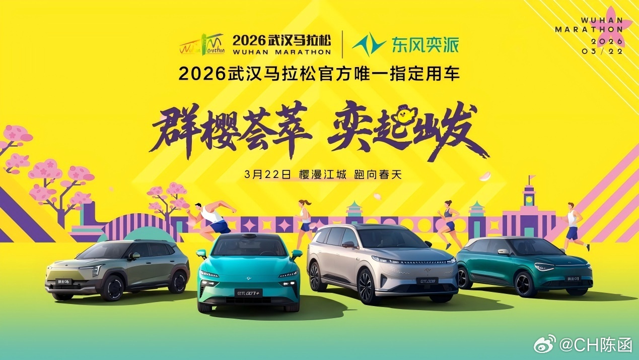 前方传喜讯!东风奕派继续赞助2026武汉马拉松!旗下eπ007+、eπ007、eπ008、纳米01和纳米06将作为“2026武汉马拉松官方唯一指定用车”。武汉马拉松是国内热度最高的马拉松之一,非常难中签,希望今年还有机会跑汉马