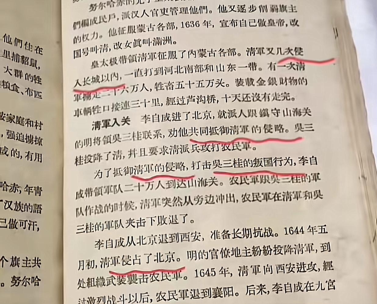 1956版历史课本太敢写! 没有康乾盛世,满篇都是抗争。 翻到1956年的中国历史中学课本,才发现和现在的教材差得不是一星半点。 这本老课本里,压根没提“康乾盛世”,反而用大篇幅讲满洲的兴起、明与后金的斗争,还有太平天国这类反抗运动。 书里对女真族迁徙、生活的描述很直白,配的辽东疆域图也清晰标注了当时的部族分布,字里行间都在讲历史里的抗争与博弈。 对比现在的教材,老课本的叙事角度更侧重底层反抗和民族斗争,少了些对封建王朝盛世的渲染。难怪有人说,不同年代的课本,藏着不同的历史视角啊! 历史课本