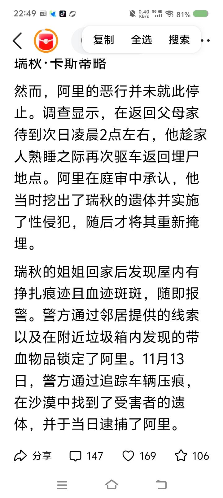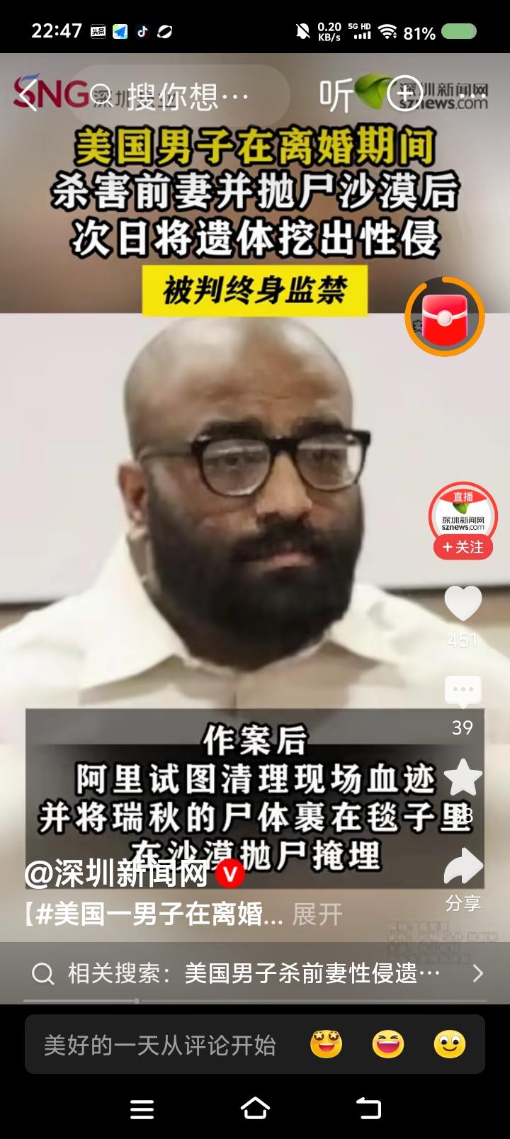 我想怀疑进化论了—— 据报道,美国一男子杀害前妻,掩埋。第二天凌晨2点左右前往掩埋地,挖出遗体,性侵。被判终身监禁。检察官表示:“他没有悔意。”死者家属表示,死者生前温柔、慈爱,正准备攻读硕士学位,对未来与孩子充满憧憬。 点评: 我是不是该怀疑进化论了? 从大屠杀,到极端犯罪,到各种侵略,怎么会有这样一个“类人生物群”,不把别人的生命当回事!动物间的杀戮,基于捕食。类人群体的伤害,不仅是动物行为,有的还赋予意识和文化因素。 这个世界矛盾不少,人与兽的矛盾日益突出。