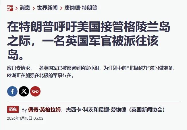 山不在高,兵不在多,多国驻军格陵兰岛重在宣示 在美国的特朗普政府志在必得丹麦的格陵兰岛以后,欧洲国家应声反对,多国宣布派出军队与丹麦站在一起,守护格陵兰岛不受外国侵犯。 继德国宣布出兵13人后,法国、丹麦和挪威也相继公布了其“保卫格陵兰岛”的兵力规模,其中法国派出的军队包括15名山地战专家,挪威则派出了由2人组成的“大军”,英国更少,只派出一名军官加入丹麦军队的侦察小组。   我们的许多军事大V对于欧洲国家派出军队的规范明显的嘲笑多于肯定,比如一个著名的“邵永灵”就说:虽然这几天欧洲各国嘴上喊着“加强格陵兰岛防卫”,但这个出兵规模简直滑稽:欧洲之前对俄罗斯张牙舞爪的姿态去哪了?英法德三国不是时刻准备冲进乌克兰跟俄罗斯大战一场,既然都动员这么久了,怎么还派出这点人“保卫”格陵兰岛? 其实,他根本就没有看清楚格林兰岛和乌克兰的情况完全不是一回事,乌克兰和俄罗斯的冲突是一场你死我活的战争,是血与火的洗礼,不但关系到乌克兰国家和民族的存亡,也关系到欧洲的安全和世界地缘政治格局的重组,也可以说是欧洲的生死之战,但美国与丹麦的格林兰岛的争议是北约组织内部的争端,虽然特朗普心心念念的要夺取,甚至扬言不惜采用军事手段,但如果丹麦坚决的不屈从,从欧洲国家又坚决的反对,即使特朗普政府要想对欧洲国家开战,美国的政治制度也不至于昏到这一招,任由特朗普胡来。 所以欧洲国家派出军队驻军格陵兰岛,真正的象征意义大于实际意义,就像在联合国悬挂的国旗一样,是一种宣示,是一种表态,说明这么多的国家和丹麦站在一起。 如果真正的发展到美国与欧洲国家开战,那在某种意义上说真的就是“世界末日”的来临,特朗普不但无法让美国再次伟大,甚至还让美国成为千古罪人,是人类社会发展的倒退,估计特朗普也不愿意承担这种责任,他实际上也担不起这个责任。