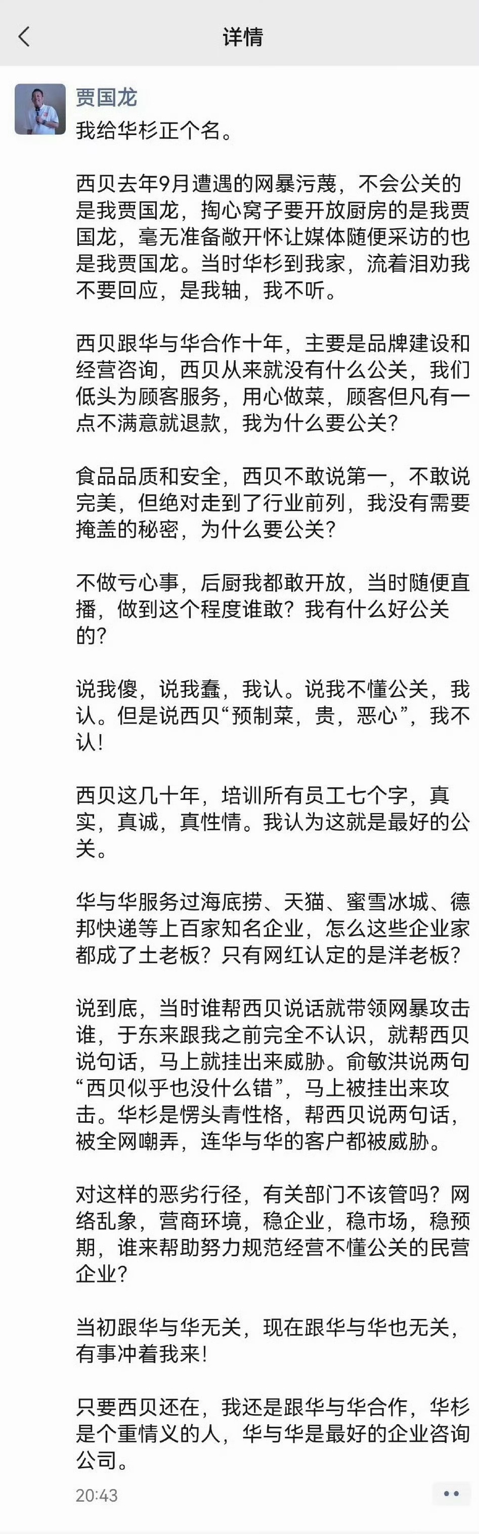 西贝罗永浩西贝的问题就是创始人的情商太低,创始人没有任何公关能力,加上“华与华