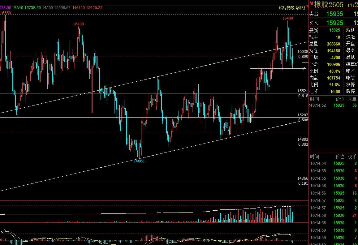 天然橡胶: 近期天然橡胶市场处于“强预期、弱现实”的博弈之中,价格维持高位震荡。强预期源于供应与政策:主产区进入低产期,供应收紧预期提供底部支撑,同时市场对宏观政策抱有期待。弱现实则体现在库存与需求:国内青岛及全国社会库存持续攀升,青岛地区天然橡胶库存持续增长,环比增幅达3.62%-4.79%,累库压力明显压制价格上行。 在预期与现实的相互制约下,短期市场预计延续震荡格局。橡胶期货2605合约,当前交易思路宽幅震荡,上方压力还是集中16500一带,下方支撑短线15800一线, 其次重要支撑15600/700区域。