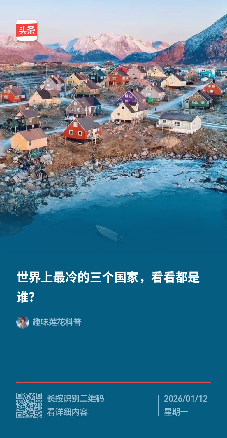 原来格陵兰岛的气温是我们想不到的,介绍文章都说这个世界第一大岛,常年冰雪覆盖,零下三五十度,以为那是个相当寒冷的地方,要比我们黑龙江黑黑河还要冷的多。 我到小区超市买东西,几个熟人正在屋里唠嗑,说美国拼命的想要那个岛,那么冷的地方,鸟都不拉屎,要它干什么? 我也是这么认为的,听他们一说 ,我拿出手机,点开豆包一问,答案来了,岛上绝大部分是那个样子,但是在南部西部有几片地方气候温和,那些寒冷的地方没有人居住,只有勘探队,科考人员,偶尔待上几天。 首都附近冬季(12-2月)平均气温-3度到-10度,夏季(6~8月)平均气温3度到10度,我们黑河,今天比前些天暖和一些,气温是零下26度至零下16度,当然我们这里夏季气温挺高,最高温度能达到30度,记得前些年的夏季最高温度是39度。 豆包回答,格陵兰岛有比较温暖的地方,是受北太平洋暖流微弱的影响。 原来人家格陵南岛一部靠近北冰洋,却比我们黑河这个地方暖和多了,出门就北风刺骨的人,还可怜格陵兰岛的人呢。