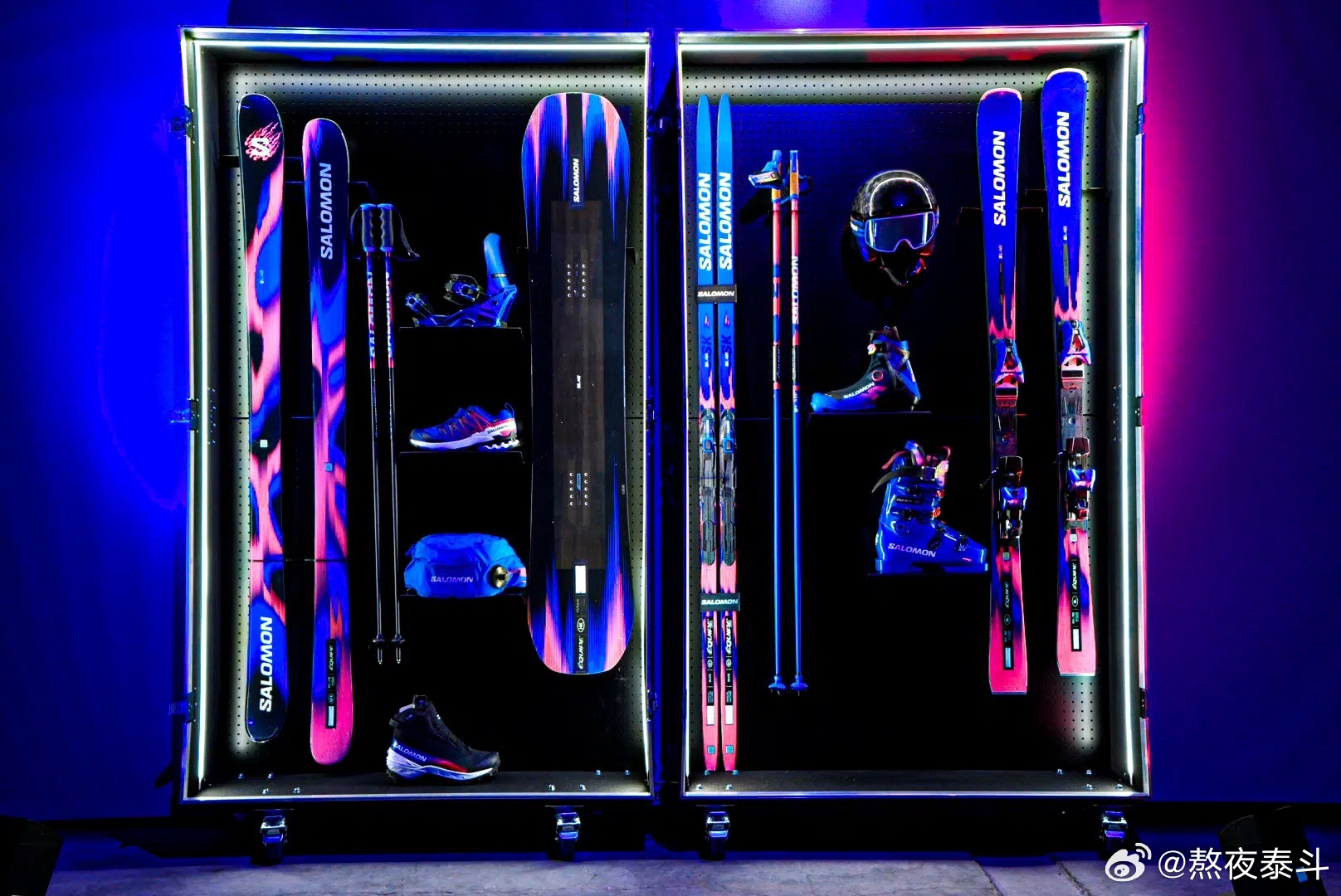 Salomon将作为2月6日至22日在意大利米兰科尔蒂纳举行的冬季奥运会首选合作伙伴为志愿者和奥运圣火携带者提供服装和装备。Equipe系列的设计,前部为电蓝色,后部为红色和粉红色的火焰,底部为黄色斑点。
