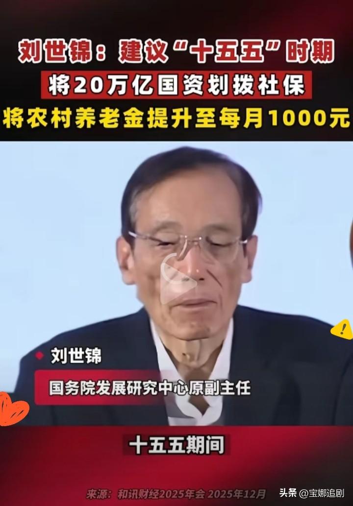 用国资反哺1.26亿农村老人!刘世锦的“两步走”涨养老金方案,真的说到了老百姓心坎里! 现在农村老人每月才200多养老金,刚够糊口,哪有能力消费?而这个方案太实在,划两个十万亿国资进社保,先花三年涨到620元,再两年冲到1000元,既缩小城乡养老差距,又能激活消费。 这可不是单纯发福利,而是双赢的智慧!农村老人消费倾向高,养老金提至1000元预计能拉动1.8万亿GDP,给经济添动力。国资本就该反哺民生,农村老人为国家发展熬了一辈子,晚年能领份体面养老金,既是保障也是心安。 养老有了底,消费才有劲,这才是民生与发展的双向奔赴。大家觉得这个涨养老金方案靠谱吗?养老金调 养老金统一标致