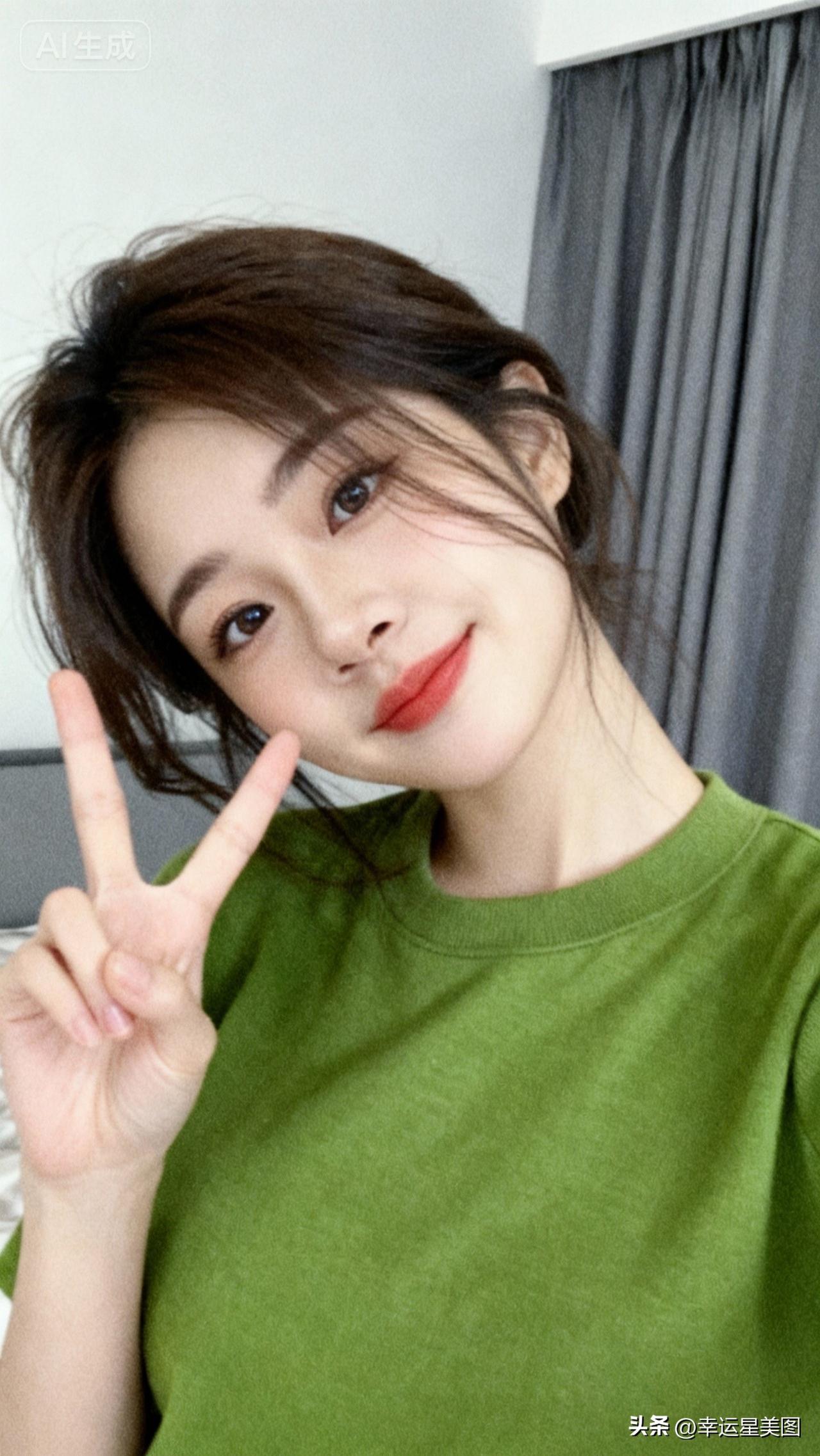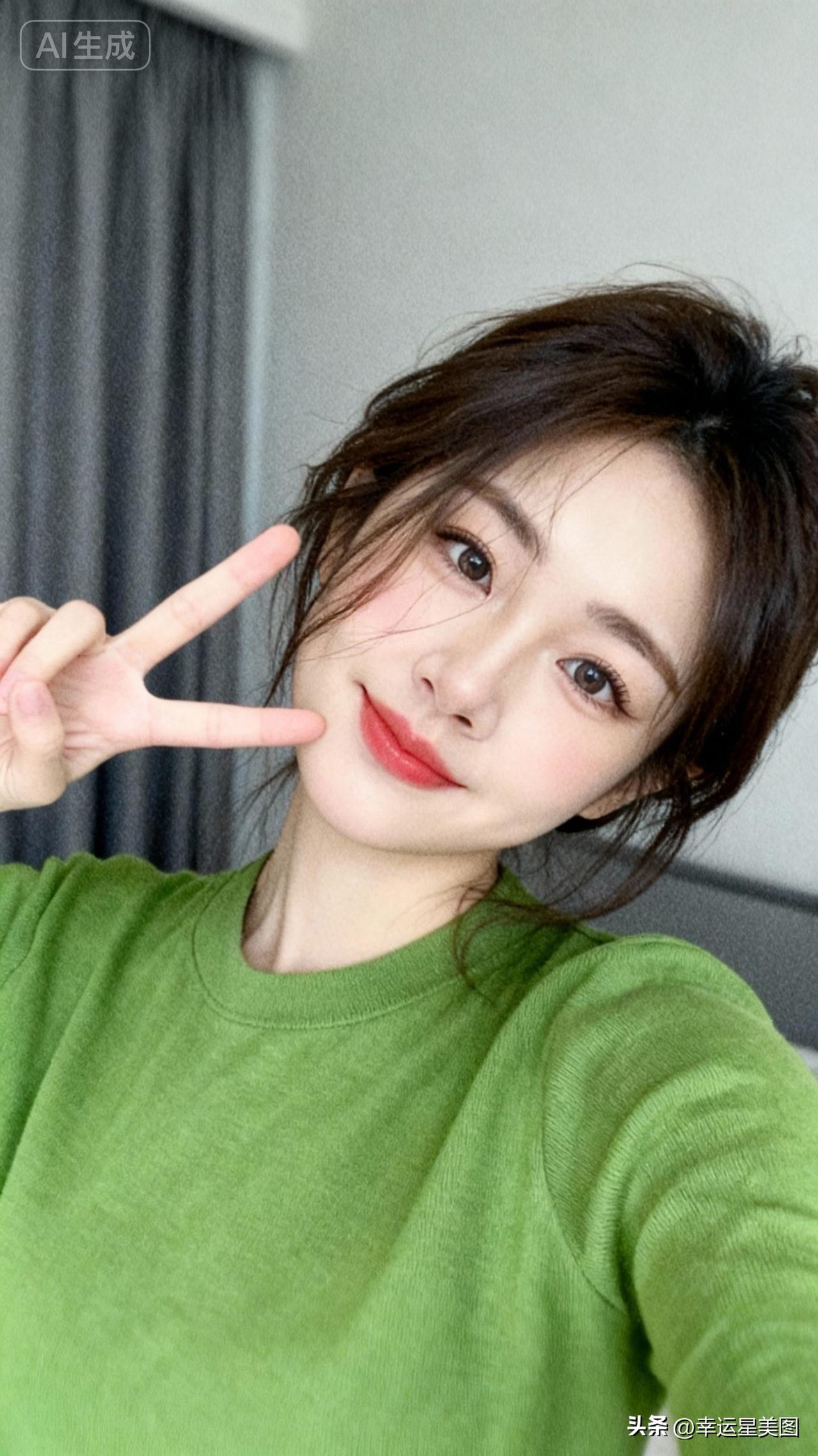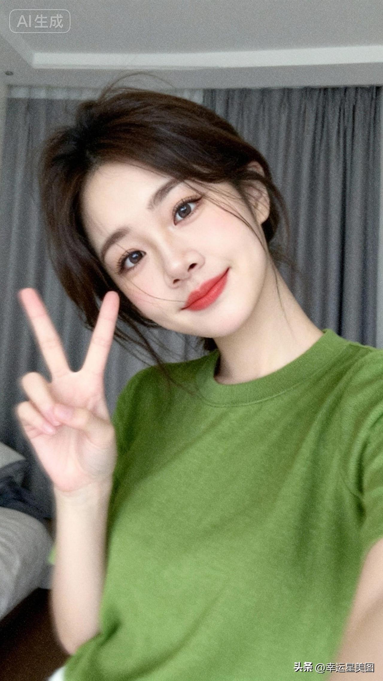 都市街头,绿衣少女,微笑如阳光,温暖如春日。