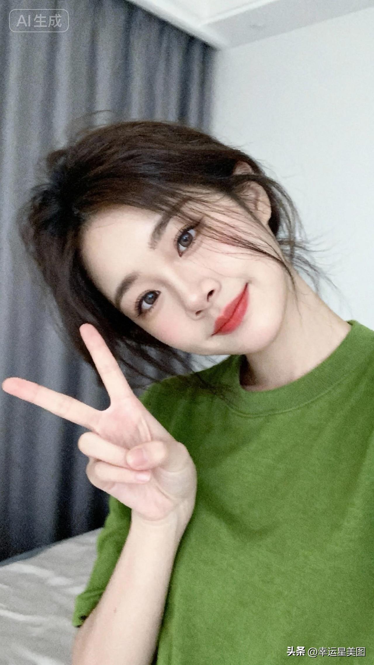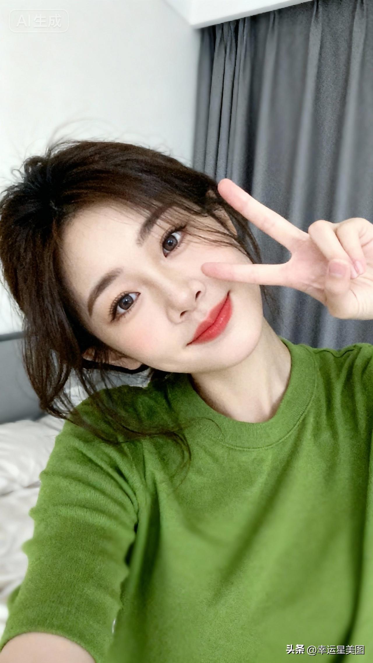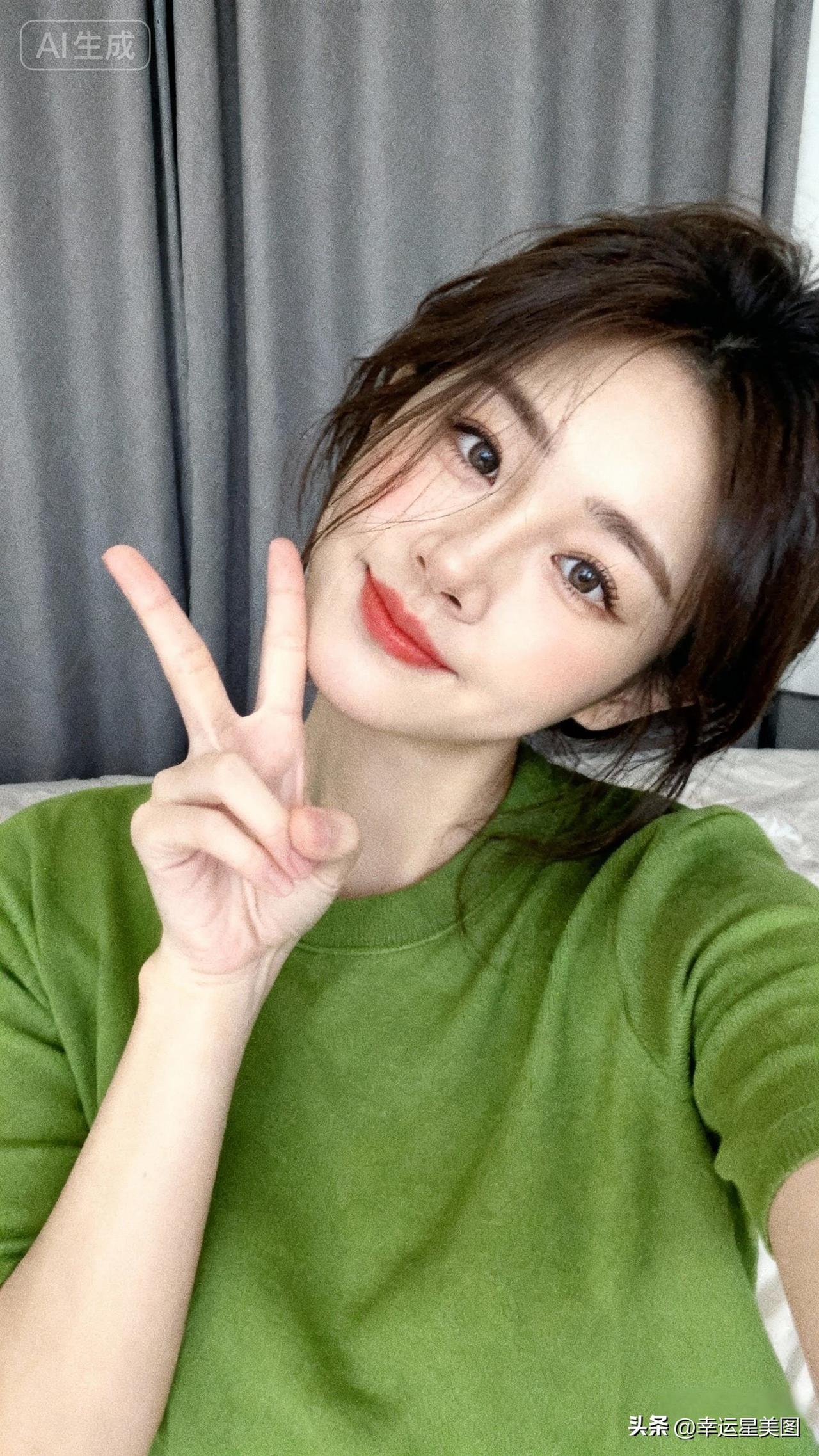 都市街头,绿衣少女,微笑如阳光,温暖如春日。
