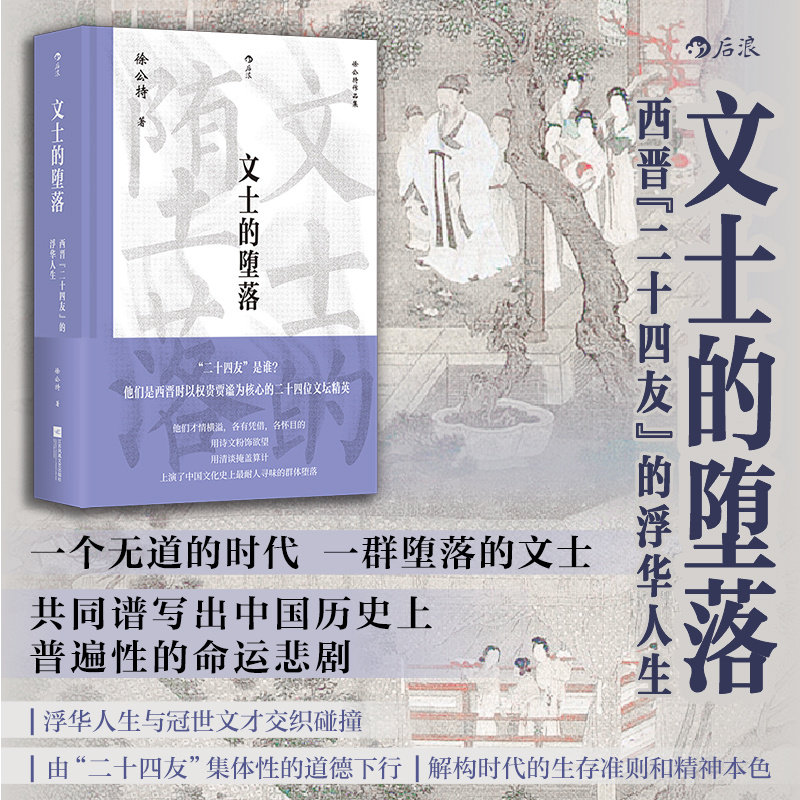 新书推送 《文士的堕落:西晋“二十四友”的浮华人生》⭕一个无道的时代,一群堕落的文士,联袂上演中国历史上普遍性的命运悲剧⭕本书着眼轰动一时的浮华文士集团,深入解读“二十四友”背后的西晋道德文化风尚,用他们的生命轨迹探析西晋王朝的辉煌与堕落。-------------------西晋惠帝永康元年(300)前后,一群倜傥才子相聚京城洛阳。一时的利益追求和人生志趣的交会,再加上特别的政治机缘,使得他们形成了一个以外戚贾谧为核心的浮华文士群体——“二十四友”。本书聚焦“二十四友”这一特殊集团,关注其成员以文士的身份和特质,深入且持续参与西晋政局的过程,综合分析其中复杂的因缘和机理。由其逢迎附会的浮华人生和金谷贵游的文士风流这双重人格,窥探中国古代知识分子的“堕落”。于“二十四友”跌宕的人生表演和复杂多样的生活道路中,照见那一时代文士的行为方式和真实的灵魂世界,以及具有普遍意义的命运悲剧。