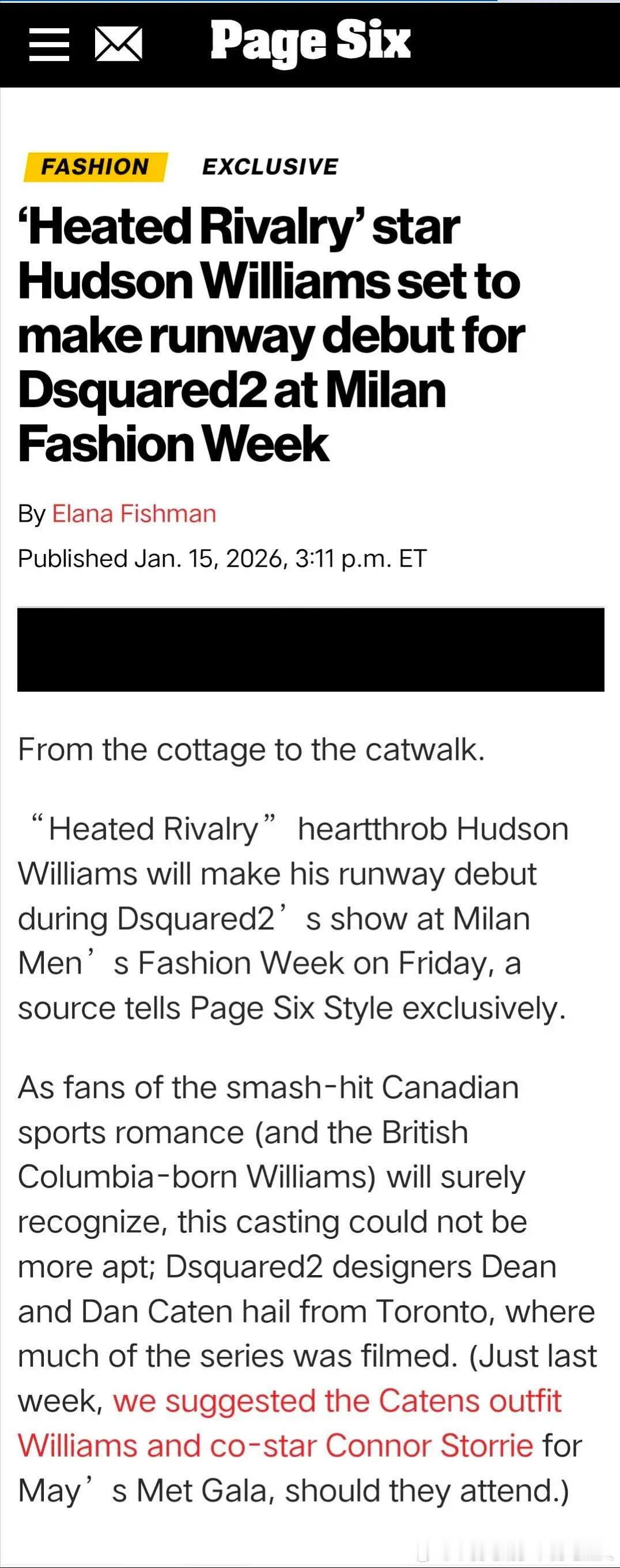 Hudson将参加米兰时装周,于北京时间1.18凌晨3点为自己国家加拿大本土品牌dsquared2走秀!他家去年秀场设计很出圈,将警察局场景搬上T台,设计师本人“被逮捕”开场,非常有话题性。