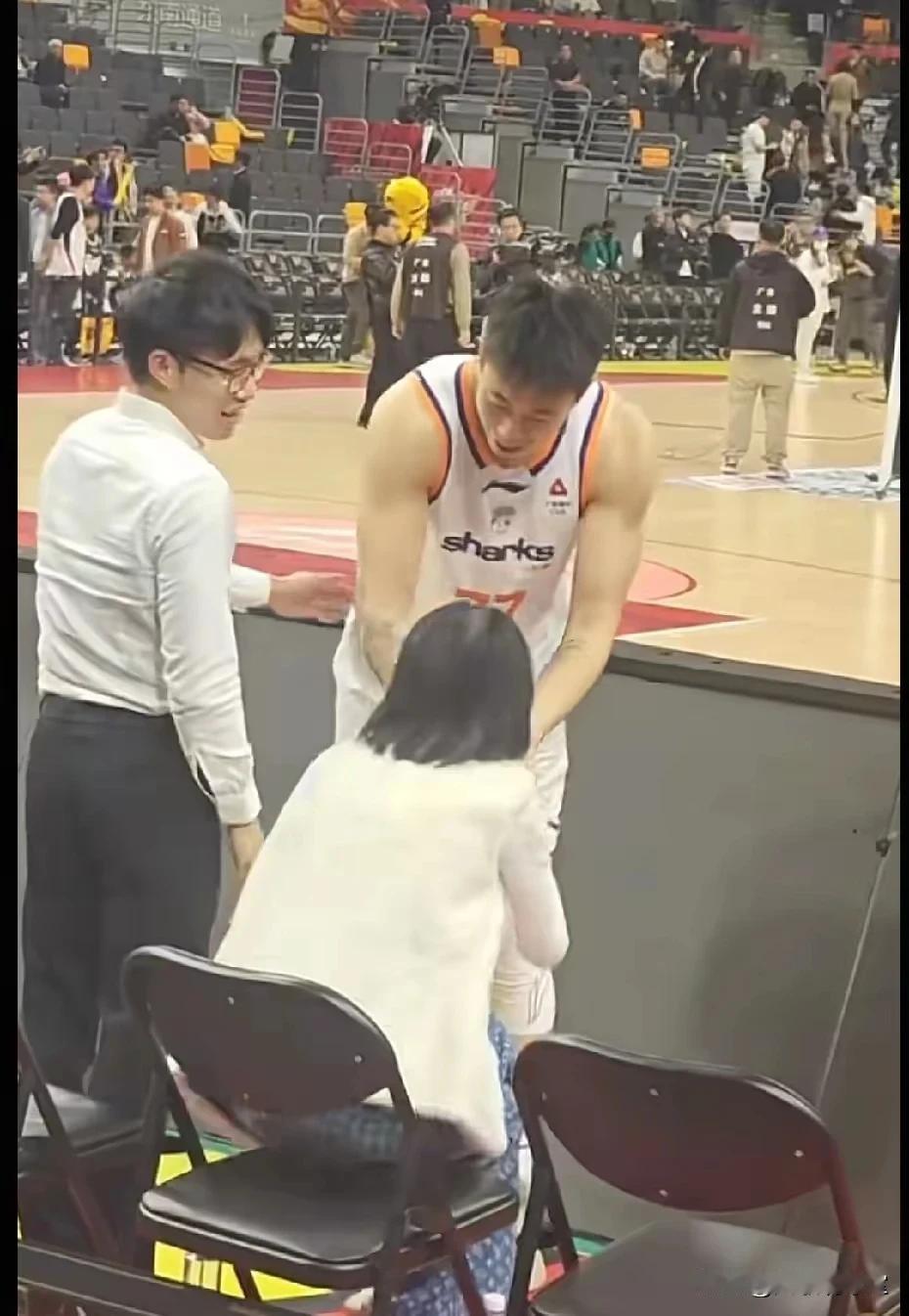 万万没想到,张镇麟、刘礼嘉和广东宏远俱乐部的老板娘、老板儿子的关系那么好,上海与广东的比赛结束后,两人不约而同地奔向广东队的家属席,分别与广东队老板娘吴迪和老板儿子陈浩峰握手问候,感觉他们非常熟悉且交情甚深,不得不让我怀疑,休赛期广东队肯定接触过张镇麟,并且有意通过交易换来张镇麟,而张镇麟也想加盟广东,赛后也跑过去与杜峰握手,但可能是辽宁俱乐部方面不想将张镇麟交易到广东,所以最后谈判告吹了,但是张镇麟与广东队的管理层还是有感情的!