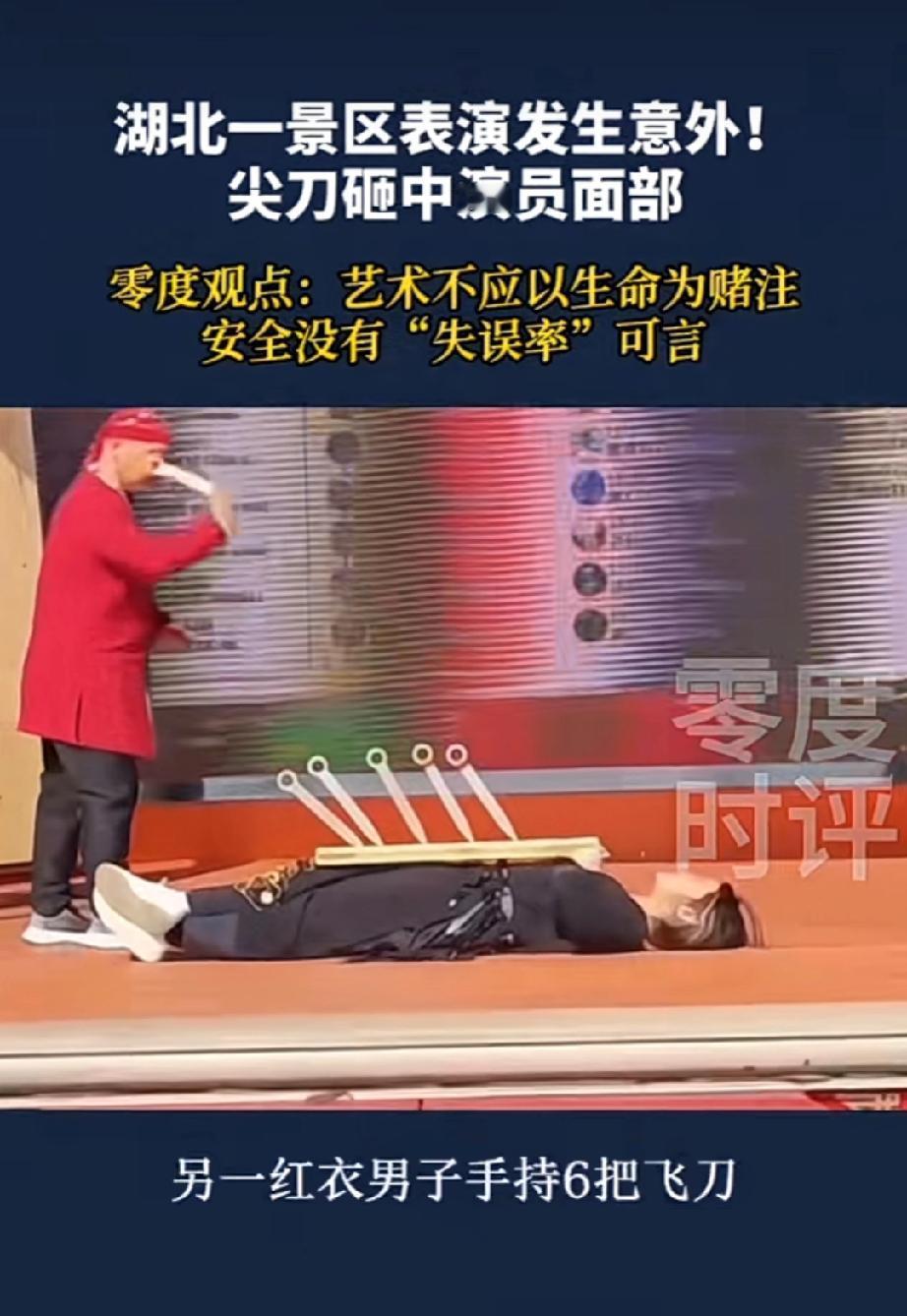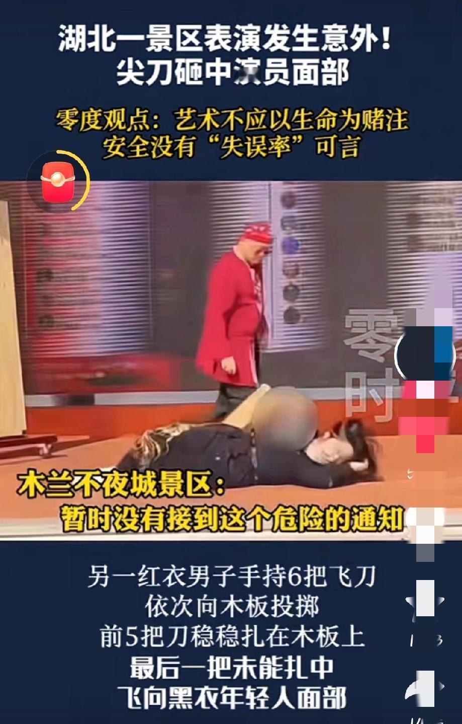 太惊险了!湖北景区飞刀表演出现意外,尖刀砸中演员面部!艺术不应该以生命为赌注