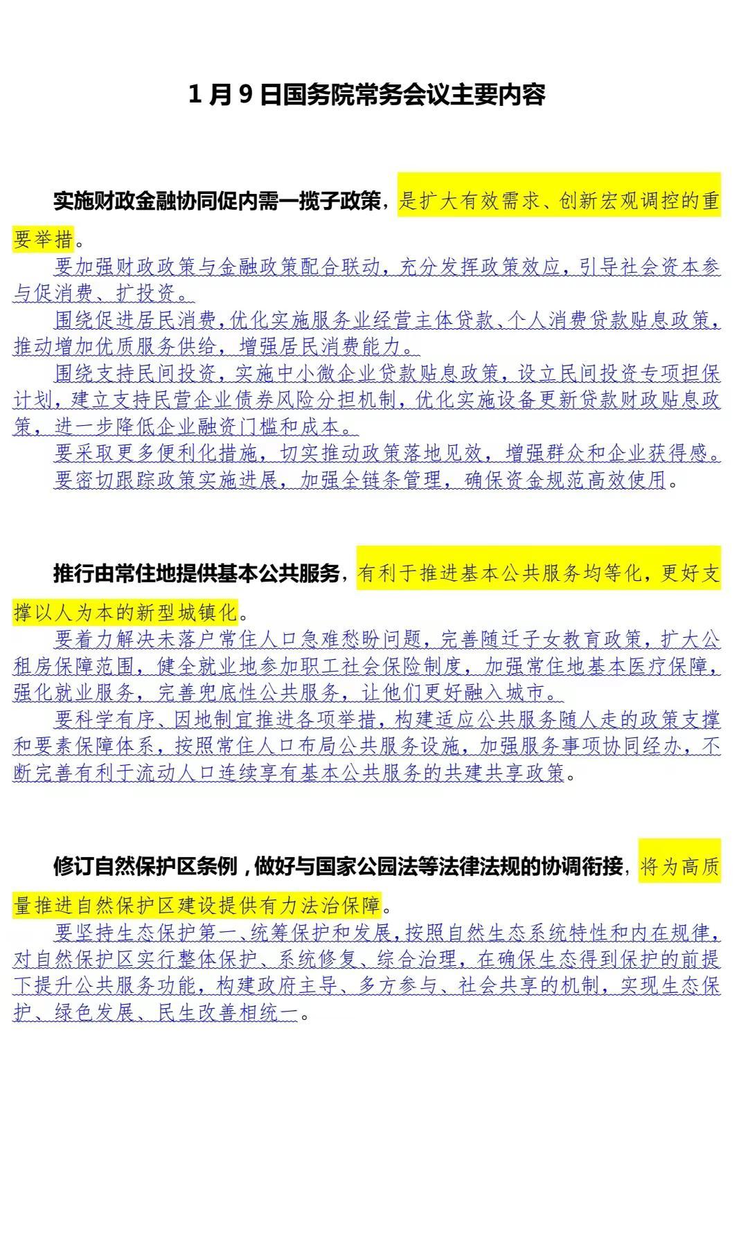 【政策速递-国常会主要内容】财政金融协同促内需、常住地提供基本公共服务、修订自然保护区条例。公考干货 素材 省考 政策