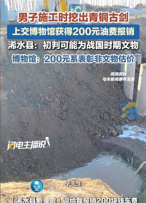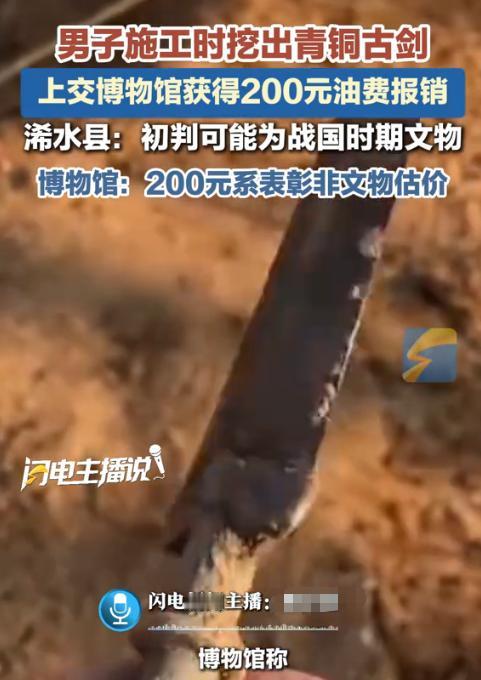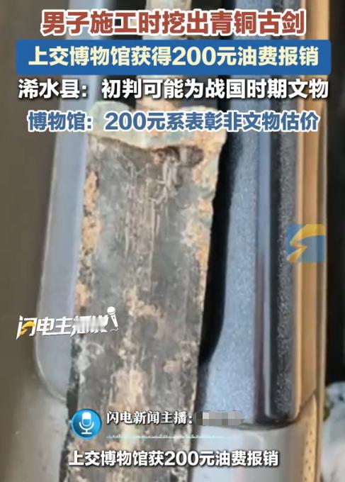 “简直赚翻了!”近日,湖北黄冈,一男子在工地施工时,突然见运着混凝土的挖掘机上掉出有一块土,男子赶忙停下手中活上前查看,扒开土后竟是一把断成两截的古剑,剑身还隐隐透着青铜光泽!网友:这运气也太逆天了! 要知道,我国古代冷兵器历史悠久,宝剑更是其中的珍品,尤其是古兵器类文物,不仅承载着古代的铸造工艺,更是历史的见证。 据媒体1月15日报道,发现古剑的毕先生是工地的工作人员,当天工地正用挖掘机进行土方作业,他在一旁负责现场协调。突然,挖掘机挖起的一大包泥土从铲斗里滚落,重重砸在地上,土块散开后,一个带着金属质感的物件露了出来,瞬间吸引了毕先生的注意。 他赶忙走上前,蹲在地上小心翼翼地扒开周围的泥土,想看看这到底是什么东西。随着泥土被一点点清理,一个狭长的金属物件逐渐显露,看轮廓分明是一把剑,可剑身却断成了两截,剑身上还覆盖着厚厚的铜锈,泛着暗绿色的光泽。 毕先生仔细端详后,立刻意识到这不是普通的金属制品,于是上网查询,发现可能是战国时期的青铜剑。 于是他赶紧把断剑小心收好,心里清楚这类文物属于国家所有,不能私自留存。于是毕先生第一时间带着断剑前往当地博物馆,将这件文物上交给了国家。事后为了向毕先生表达感谢,博物馆补偿了毕先生200元作为油钱。 网友看后表示,毕先生也太细心了,泥土里滚出个东西都能发现是古剑,还主动上交,这觉悟没谁了! 信息来源:《男子施工时挖出青铜古剑上交博物馆获200元油费报销,博物馆:200元系表彰非文物估价。