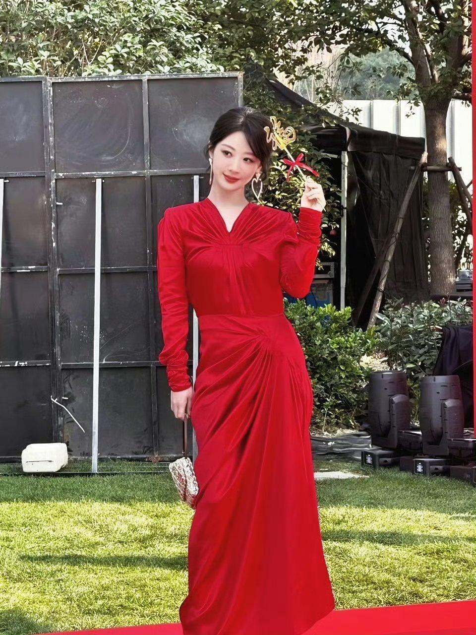 杨紫红裙好明媚杨紫红裙美成这样,好明媚啊气质女王!