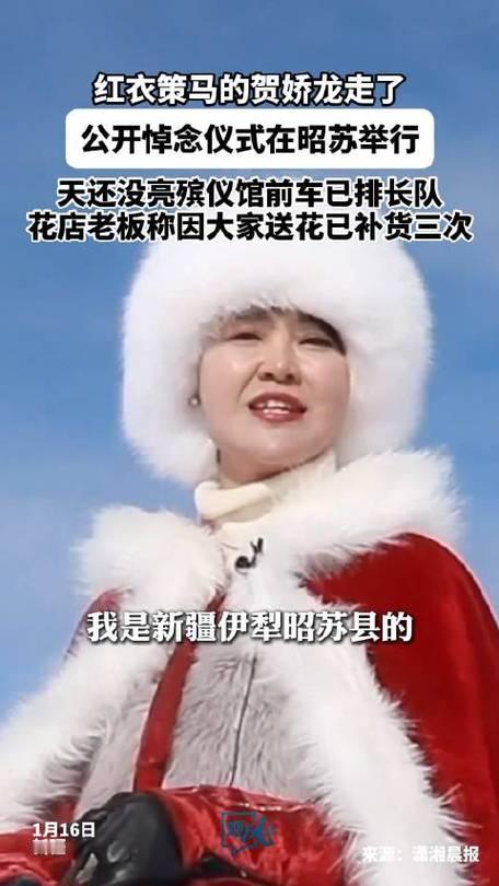 雪落昭苏送娇龙!市民雪地插白玫送别,家属收满鲜花卡片,她的红袍永远留在草原 家人们,昭苏的雪今天格外凉,那匹载着红衣县长的天马,终究是独自奔向了远方!1月16日上午,贺娇龙的悼念仪式在昭苏殡仪馆举行,几百名群众冒着严寒送别,有人在雪地插上白玫瑰,家属小心翼翼收好每一束鲜花和卡片,这一幕看哭无数人! 谁能想到,那个身披红斗篷、在雪原扬鞭策马的“网红县长”,会以这样的方式与我们告别。1月11日,她在博乐市为农产品直播拍摄时意外坠马,历经3天抢救还是没能留住。16日仪式结束后,她的遗体被送往伊宁市,而昭苏的雪地里,还留着民众自发献上的花束,排了一公里多的车队,是大家能送她的最后一程。 很多人最初认识她,是那条播放量超6亿的策马视频。零下20多度的寒冬,她借上文工团的红斗篷,挤出午休时间拍摄,只为推广昭苏的天马和旅游。本以为只是“昙花一现”的网红,没想到她一坚持就是5年:500余场公益直播,带动农产品销售额破6亿元,万余户农牧民增收,直播间百万打赏全捐公益,摔断肋骨还在坚持助农 。 走红后她没贪流量红利,反而把“县长热线”搬到直播间,耐心解答群众疑问,甚至开导过发泄怨气的网友。有人质疑她“不务正业”,她却坦言:“当官不为民做主,不如回家卖红薯,我只想帮老百姓把红薯卖出去” 。如今追悼仪式上,全县的菊花被抢购一空,有人驱车数百公里赶来,外卖小哥穿梭送花,这便是群众对她最实在的认可。 仪式结束人群散去,但贺娇龙留下的不止是6亿播放量的爆款视频,更是283个就业岗位、千万农牧民的好日子,是“流量为公”的初心。网友说:“天山万马犹奔腾,世间再无那一抹红”,可那抹红早已化作草原上的希望,刻在新疆大地上。 我们怀念贺娇龙,本质上是怀念那些踏实干事、真心为民的人。她用47年人生告诉我们:真正的网红,是把流量留给家乡;真正的干部,是把百姓放在心上。愿她一路走好,愿更多人能接过她的接力棒,把这份赤诚与坚守传递下去。 你还记得第一次刷到贺娇龙的视频吗?对于她的离去,你有什么想说的?欢迎评论区留言,点赞转发,让更多人记住这位马背上的实干县长!昭苏冰雪节 昭苏雾凇