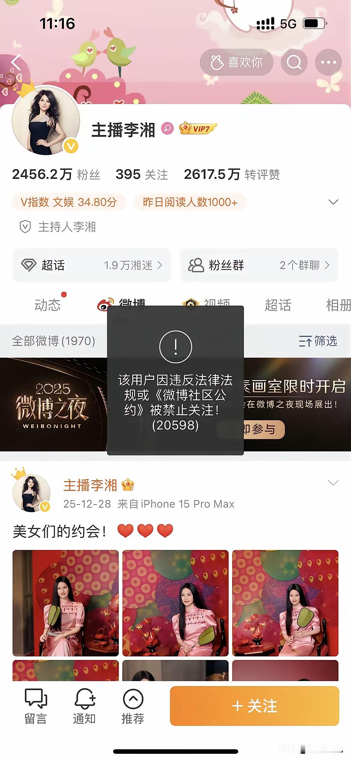 李湘究竟怎么了?怪不得前几天王诗龄回英国时是王岳伦去送机,不见李湘的身影!刚发现她的微博已无法关注,她上一次公开露面还是在澳门跨年!静候后续消息——这波反转来得猝不及防,全网都炸了锅! 谁能想到,48小时前还和张艺兴同台出席外交活动、气场全开的她,如今全平台账号被标“禁止关注”,疑似违反法规或社区公约。更让人唏嘘的是,她常年高调炫富,月伙食费60万、送女儿千万豪车的传闻刷屏,却忘了公众人物该传递正向价值观。名下20家公司14家注销,前夫涉案的时间线巧合,更添疑云。 把名气当捞金工具,把炫富当流量密码,终究会触碰底线。公众人物的光环从来不是特权,而是责任。真正的成功不该靠物质堆砌,而是守规矩、传正道。愿娱乐圈少些浮躁功利,多些敬畏之心,让价值观回归本真,这才是对粉丝、对社会最好的回馈。