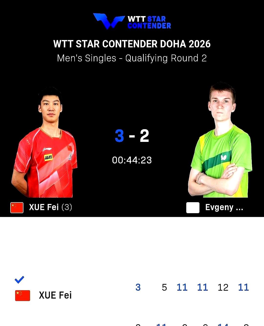 5-11开局+2赛点=绝境翻盘 薛飞把悬崖边的自己一把拽回。 资格赛打中立选手季霍诺夫,先丢首局后连追两局,第四局12-14差点被送走,决胜局8-10落后连得3分,11-8收工。 同一天他再磨德国迈斯纳,又是3-2,两场比赛都在鬼门关前买票。 国乒六人首轮全胜,但过程一点不轻松,28-26的神局也蹦了出来。 600积分不算顶级,却是年轻人抢排名的捷径,多哈连轴转,场馆空调冷、球速快,谁适应谁占便宜。 直板老将还能这样咬,比赢本身更让人踏实。