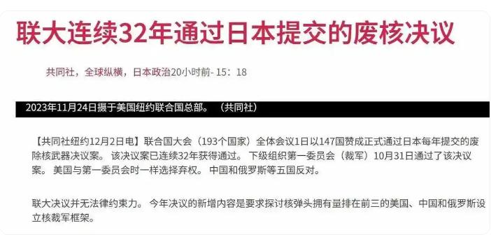 这出“核裁军”的国际大戏,到底唱的是什么调?和平还是政治,废核还是博弈? 2026年1月初,联合国大会以147票赞成、15票弃权、6票反对的压倒性结果,通过了一项由日本主导的“废除核武器”决议案。乍一看,这似乎是一场全球共识的胜利,是对无核世界的共同期待。但细看投票细节和文本内容,疑问就像窗外寒风一样,越刮越冷。 日本这次提交的决议案,其实并不新鲜。从1994年起,日本每年都会在联合国提交类似的“废核”决议,打的都是“和平受害者”的道德牌。毕竟作为世界上唯一在战争中遭受原子弹轰炸的国家,日本在这方面的话语权是独一份的。 但今年的版本,不太一样。决议的措辞悄悄发生了变化:从过去泛泛而谈的“全球核裁军”,变成了特别强调美、俄、中三国必须承担“核心裁军责任”。换句话说,这份决议虽然打着普遍裁军的旗号,实质上却把枪口悄悄对准了特定国家。 尤其是对中国的表述,格外显眼。明明全球90%以上的核武器都集中在美俄两国,但这份文本却罕见地把中国拉进“三巨头”行列,进行重点强调。这种话术设计,就像是把一把尺子拿来量人,却故意把刻度挪了几格。 美国的态度变化,更耐人寻味。最初弃权,是典型的“试探风向”操作——既不明确支持,也不直接反对,给自己留足回旋空间。但在最后关头,美国突然投下赞成票。这不是态度转变,而是一种战略表态。 华盛顿为什么要这么做?答案并不复杂。在特朗普政府第三年,财政部长贝森特正全力推进“印太再平衡2.0”,对中俄的战略竞争已经从军事、经济蔓延到话语权领域。此刻支持日本的提案,美国不仅顺水推舟地向中国施压,还能借日本的“和平招牌”在联合国这个多边舞台上打出一记漂亮的“道德高地”组合拳。 相比之下,中国与俄罗斯的反对票虽然在程序上被“碾压”,但在立场上却异常坚定。中国常驻联合国代表团明确指出:这份决议“脱离国际裁军现实、缺乏全面性、公平性”,并非真正推动全球战略稳定的道路。俄罗斯代表也表态称,该提案“忽视核国家间战略平衡,破坏地区安全”。 但在联合国大会这种“以票数论胜负”的场合里,再合理的反对声音,也挡不住“147:6”的碾压式结果。 很多无核国家支持“废核”本身出于理想主义立场,这是可以理解的。谁不希望世界少点炸弹、多点和平?但问题是,并不是所有国家都能看清这份文本背后的地缘政治动机。对一些国家而言,只要是“废核”,就值得支持;至于里面有没有政治算计,可能压根没人在意。 还有一些国家,可能是处于对美日外交压力的考虑,不愿意在公开场合与之唱反调——哪怕心里明白,这份决议并不那么单纯。比如印尼、马来西亚等国选择了弃权,实际上正反映了他们对这种“选择性裁军”的疑虑。 而身为提案国的日本,真的是那么清白吗? 从道德形象来看,日本一直以“核爆受害者”的身份在国际上赢得同情。但现实却没那么简单。根据国际原子能机构的数据,日本目前持有约47吨分离钚,是全球最大的民用钚储备国之一。这些材料理论上足以制造上千枚核弹头。虽然它们目前“还没有”被武器化,但从技术角度讲,只差一步。 更值得关注的是日本的国内政治动向。近年来,岸田文雄政府在安全政策上不断松绑,扩大防卫预算,强化与美军的协同作战能力。日本国内关于修宪、突破“无核三原则”、发展远程打击能力的讨论也越来越频繁。 《产经新闻》甚至公开刊登日本政客关于“必要时考虑拥有反击能力”的表态。这种政策走向,与“和平倡导者”的人设显然相差甚远。 所以,日本这次在联合国高调推动“废核”议案,是否也有为自身政策“洗白”、顺便向他国施压的战略意图?结合其近年来在地区安全问题上的激进行动,这样的怀疑并非空穴来风。 这份高票通过的决议,并不意味着全球核裁军迎来了转折点,它更像是一场“外交包装下的战略行动”。日本借助“和平”的外衣,为美国的印太战略提供弹药;美国则通过支持日本,进一步塑造对中俄“不透明核威胁”的国际舆论氛围。 真正的核裁军,应该是平等、透明、具有可验证性的进程,而不是某些国家借他人之手打压对手的工具。如果“废核”变成了“定点打击”,那么和平就不再是目标,而只是一种手段。