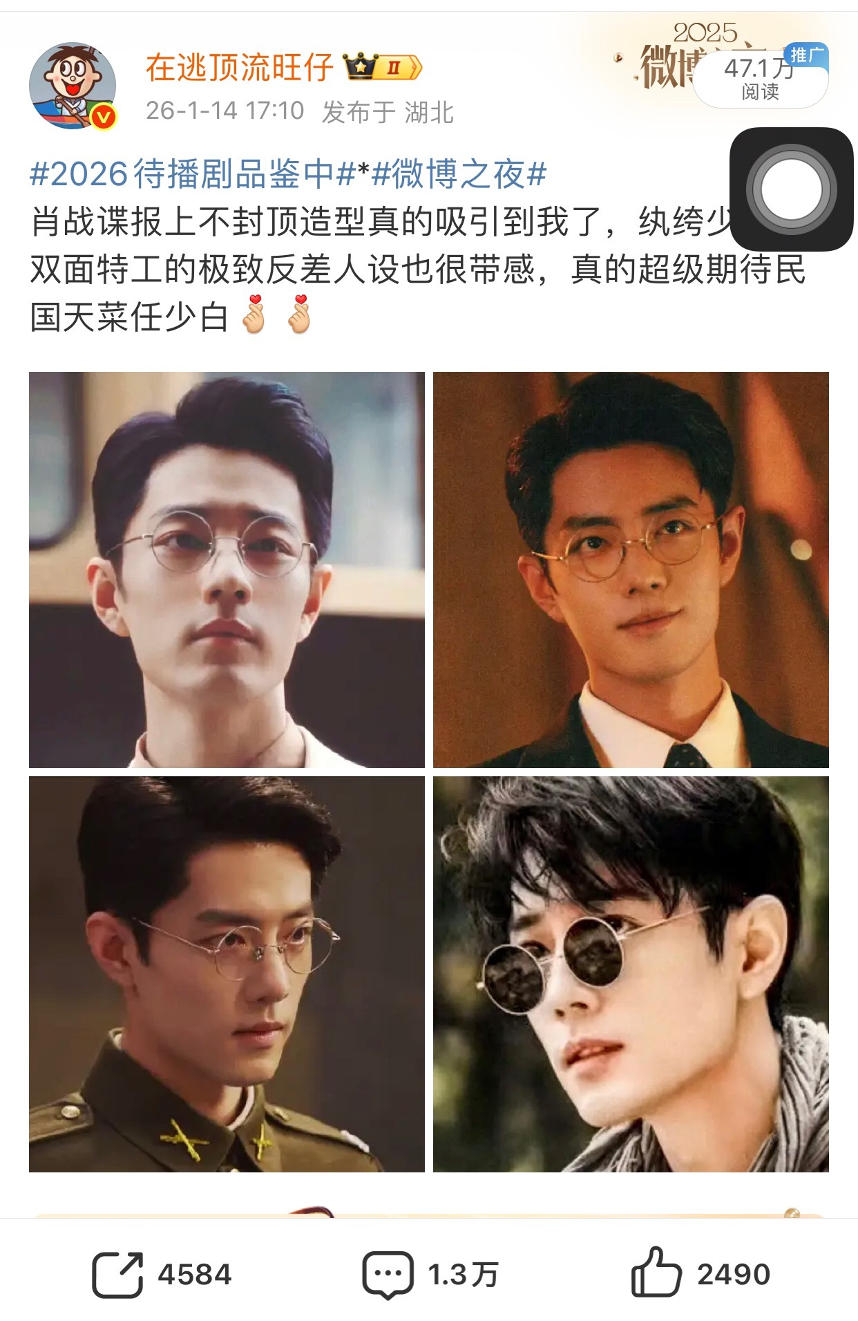 颜值与实力并存,热度与担当兼具!热爱可抵岁月漫长~肖战微博之夜年度好剧品鉴中向全