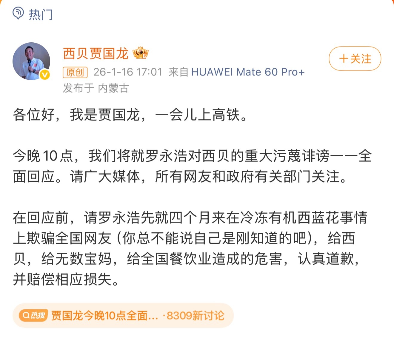 贾国龙今晚10点全面回应这都多久了,还要折腾啊,冷处理不好嘛,本来这件事都快过去了