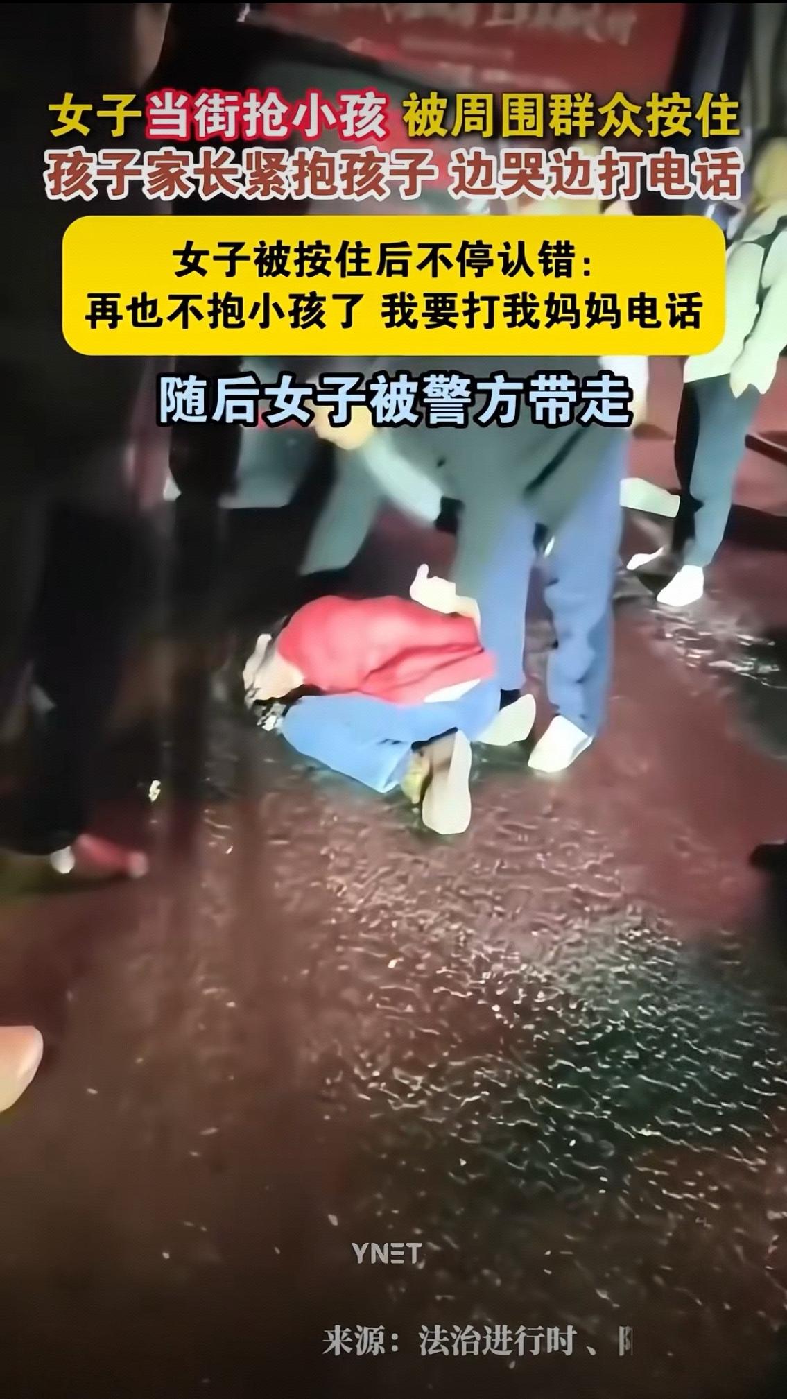 看着视频里那位母亲紧抱孩子、哭得浑身发抖的模样,谁的心脏不会跟着揪紧?当街抢孩子的画面,哪怕只是想象都足以让所有家长崩溃,而湖南邵阳街头这真实发生的一幕,更是在全网掀起了情绪的巨浪——有人为热心群众的果断点赞,有人为母亲的惊魂未定心疼,更有人对着女子“认错求妈”的反常表现争论不休。 事发当晚的夜市本满是烟火气,小吃摊冒着热气,路人悠闲散步,可红衣女子突然伸手拉拽孩子的瞬间,平静被彻底打破。孩子母亲的一声“救命”像惊雷划破夜空,卖烤肠的大哥掀了摊位就冲过来,外卖小哥边喊“别打脸”边帮忙控制,还有下班族、情侣们纷纷围拢,十几秒就将女子按倒在地。那双手紧紧反扣嫌疑人的胳膊,围起的不仅是安全防线,更是普通人骨子里的正义本能——谁都懂,孩子是一个家庭的命根,容不得半点闪失。 被按在地上的女子反复哭喊“我错了,再也不抱小孩了”,转头又哀求“要打我妈妈电话”,这矛盾的表现让网友吵翻了天。有人怒斥“人贩子的眼泪最廉价,认错不过是怕被抓”,毕竟每年失踪儿童的数字刺痛着每个人的心,谁也不敢对“抢孩子”的行为有半分纵容;也有人疑惑“真贩子会光天化日硬抢?喊着找妈妈更像精神异常”。直到警方通报传来“系误会,双方已谅解”,这场情绪风暴才出现转折,原来女子的异常举动源于认知特殊情况,并非蓄意拐骗。 可通报没能完全平息争议。家长们的恐惧从来不是空穴来风:带娃逛超市时被陌生人强行逗弄,公园散步时有人莫名拉扯孩子,这些经历让“保护孩子”的神经早已紧绷到极致。那位母亲哭着抱紧孩子的样子,是所有家长的本能反应——从十月怀胎到蹒跚学步,孩子的每一步成长都浸透着心血,谁能承受突如其来的分离?而路人的果断出手,正是对这份脆弱的守护,这份“见危必救”的默契,比任何口号都更有力量。 这场看似乌龙的事件,实则戳中了社会的痛点:当儿童安全遭遇认知障碍者的异常行为,我们该如何平衡警惕与包容?家长们要时刻攥紧孩子的手,教他们识别危险;社会也需要更多包容,为特殊人群建立更完善的监护机制,比如爱心手环、社区随访,让他们既不伤害他人,也不被误伤。而路人的正义,更需要“敢出手”也“会出手”——控制风险、及时报警,让善意不偏离理性轨道。 视频最后,警灯照亮了夜市的街道,孩子在母亲怀里逐渐平静,女子被安全带走。这场风波里,有恐惧也有温暖,有争议更有反思。说到底,每个家长都盼着孩子能在阳光下安全长大,这需要我们既保持警惕之心,也留存善意之举。如果你是现场路人,会第一时间出手吗?日常带娃你有哪些安全妙招?欢迎在评论区聊聊你的看法~强抢孩子