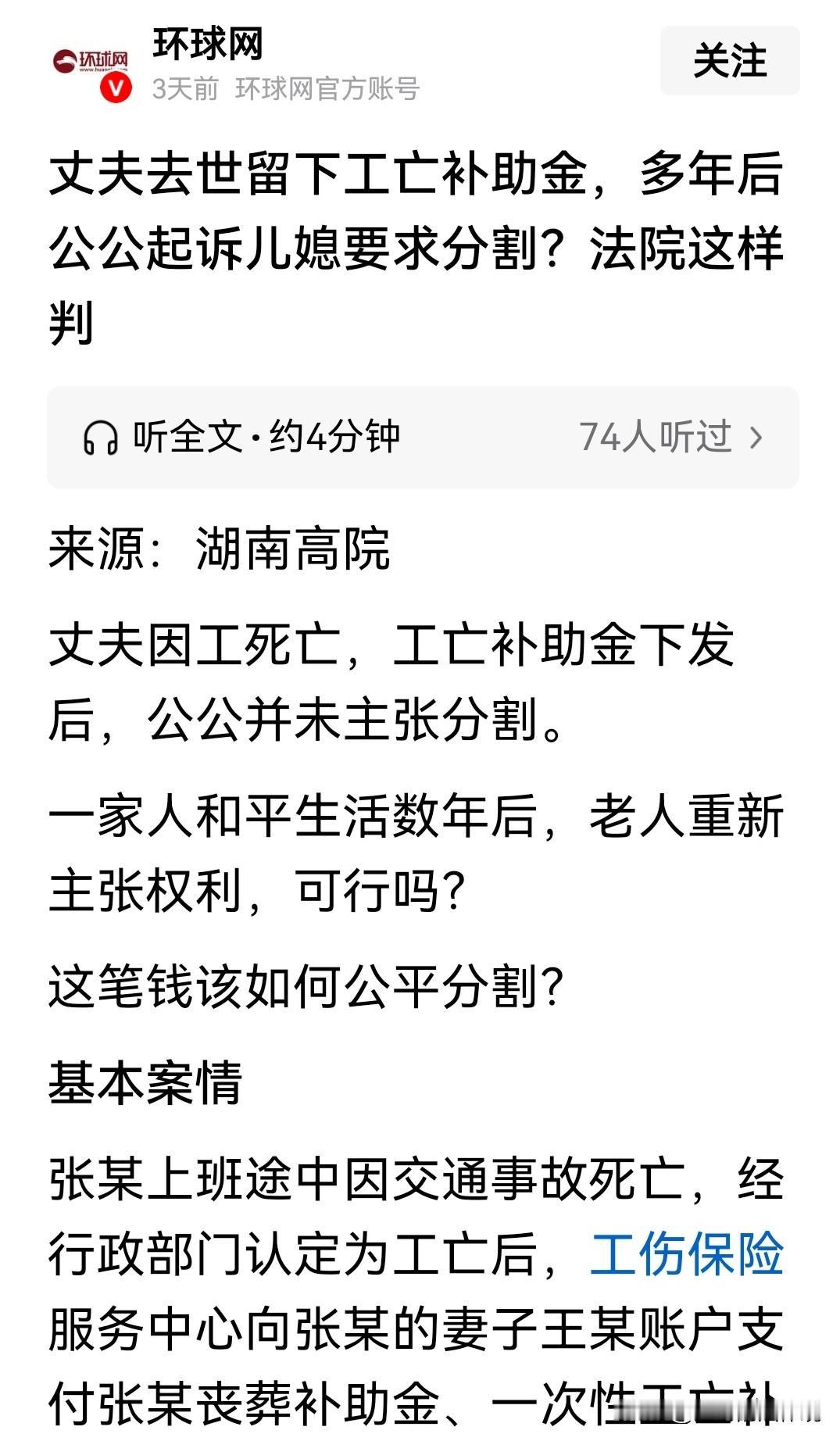 亲情在金钱面前一文不值!湖南澧县,一老人的儿子在上班途中,发生交通事故意外去世,70万元的补偿款全部打到了儿媳的账户。老人心疼儿媳和两个未成年的孙子孙女,承诺不要这笔钱,一家人共同生活多年后,孩子们已经成年,老人突然起诉儿媳和孙子、孙女,请求判令3人支付给他22万元。法庭上,儿媳称已过了诉讼时效,且丈夫离世后,老人一直由自己一家赡养,补偿款以用于家庭生活,无力再支付。法院这样判! 张某和妻子婚后生育一儿一女,因为母亲去世的早,姐姐已出嫁,老父亲和他们生活在一起。 张某挣钱养家,妻子在家照顾老人孩子,虽不富裕,但家庭和睦。 谁知就在一个平常的日子,张某去上班,却在途中遭遇车祸,经抢救无效离世。 一个幸福的5口之家,瞬间支离破碎。 张某是家里的顶梁柱,两个孩子还未成年,妻子平时在家照顾他们,还有年迈的老父亲需要赡养。 他这一走,家里的天都塌了,这老老小小的可咋生活下去! 幸亏张某的离世,被认定为工伤,家里得到了包括丧葬补助金、公亡补助金等共70万元。 算是给了这个家庭,一个希望。 这笔钱当时全部打进了张某的妻子王某的个人账户。 张某的父亲老张,老年丧子,白发人送黑发人,悲痛欲绝。 他觉着孙子孙女还小,儿媳也还年轻,儿子已经走了,儿媳如果再留不住,这个家就真的散了。 儿媳王某,平时对老人孩子都尽心尽力,是个善良人。 老张主动提出,不参与分配这笔补偿款。 让儿媳把钱用在抚养两个孩子,以及孩子们以后上学。 从此,一家四口相依为命,相互扶持,共同生活了多年。 一晃两个孩子都长大成人,孙女小芳已经毕业,他的弟弟小军正在上大学。 按说好日子来了,可老张突然对儿子的那笔补偿款,有了新的想法。 他提出,让儿媳给他22万养老金。 儿媳称,这么多年家里4个人的生活开销,和两个孩子的学费,以及大事小情用的都是这笔钱。 再说儿子还在上学,正是用钱的时候,家里已经拿不出这么多钱给老人了。 但老张此时却钻了牛角尖,非要这笔钱不可。 双方为此闹得不欢而散,多年的和睦关系,变得紧张起来。 本来和老张很亲的孙子孙女,也觉得老人不可理喻,对他的态度也变了。 老张干脆一不做二不休,把儿媳王某,和孙子小军,孙女小芳一起告上法庭。 请要求三人支付他22万元用于养老。 本来还好好的一家人,艰难的日子都过来了,如今却为了钱,走到了对薄公堂这一步。 老张认为,自己作为父亲,有权分割儿子的亡故补偿金。 王某却当庭提出了3点:1、丈夫已去世多年,本案已过了诉讼时效。 2、老张当初曾口头承诺,放弃这笔补偿款的分配。 3、这么多年过去了,除了当初为丈夫办理后事花掉的一部分外,剩余的部分已全部用于家庭花销,钱已经花完了。 小芳、小军也表示,爷爷当初为了支持他们上学,明确表过态,不要这笔赔补偿款。 而且父亲去世后,爷爷和他们生活在一起。 他们一家承担了老人的赡养义务,老人不应再分割这笔补偿款了。 法院认为,工亡补助金不属于遗产,应属于死者近亲属共有。 共有财产的分割,不适用诉讼时效,对王某称诉讼时效已过的说法,法院不予支持。 老张系死者的父亲,有权分割补偿款。 考虑到张某离世后,其丧事主要是他的妻子王某操办,花费也是他支出。 所以,补助金中的2.8万元丧葬费,由王某所有。 老张参与分割的70万元补偿款,应去除这一部分。 此外,张某去世妻子属于中年丧夫,两个孩子未成年,所有的生活、经济、精神压力都由王某承担。 老张在儿子去世后,一直和儿媳孙子孙女一起生活,王某尽了主要的赡养义务。 小军仍在上学,所有花费需要母亲王某来支付。 虽然儿子的去世,老张减少了经济来源,但老张还有一女,每月还可领取一定数额养老金。 那么,这笔补偿款该怎么分割呢? 《民法典》第303条:共有人约定不得分割共有的不动产或者动产,以维持共有关系的,应当按照约定,但是共有人有重大理由需要分割的,可以请求分割; 没有约定或者约定不明确的,按份共有人可以随时请求分割,共同共有人在共有的基础丧失或者有重大理由需要分割时可以请求分割。 老张作为共同共有人,虽曾口头放弃,但多年后因养老需求主张分割,符合“重大理由”。 《工伤保险条例》第39条:职工因工死亡,其近亲属按照下列规定从工伤保险基金领取丧葬补助金、供养亲属抚恤金和一次性工亡补助金。 70万元包含丧葬补助金、一次性工亡补助金等,其中丧葬补助金用于办理丧事,应归实际支出的王某。 工亡补助金由近亲属共有,考虑王某独自抚养子女、承担主要赡养义务。 以及老张有其他子女和养老金,判其分得10万元,既保障了老人权益,符合“照顾弱势、公平分配”的原则。 最终,法院判决,王某向老张支付补助金10万元。 对此你怎么看? 关注@赵哥的法律观,明辨是非不上当。