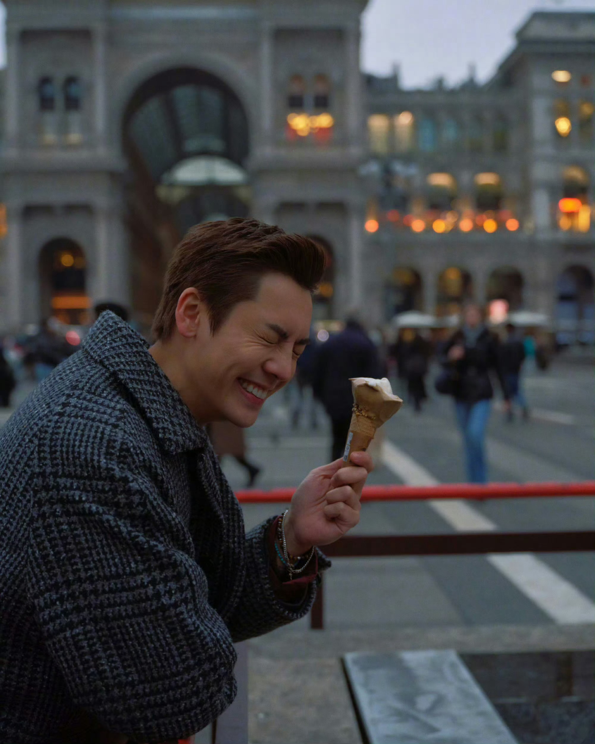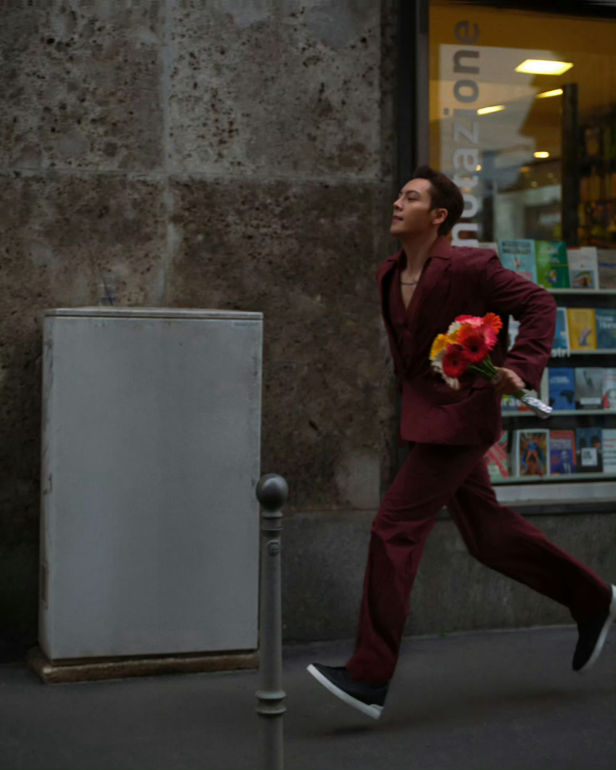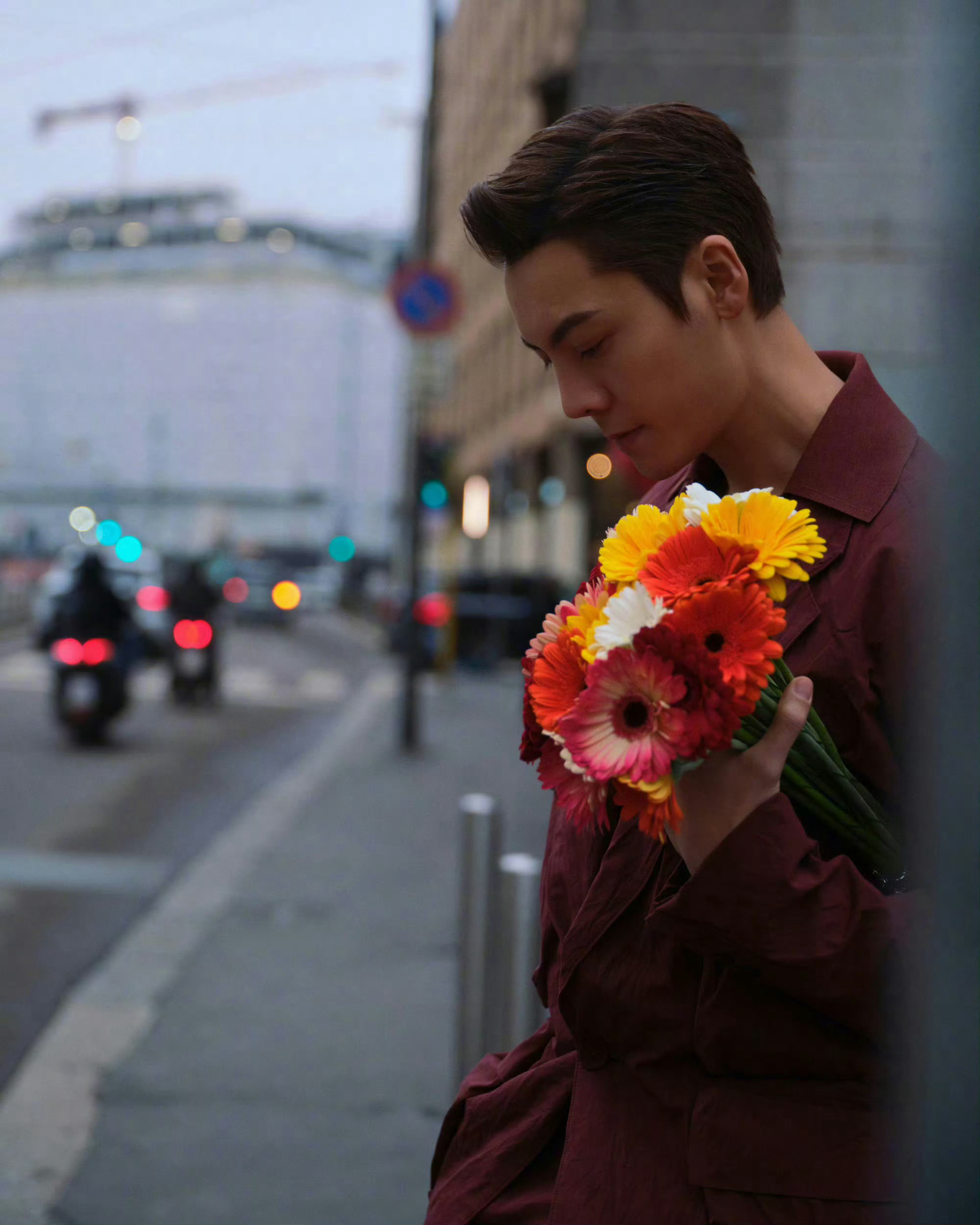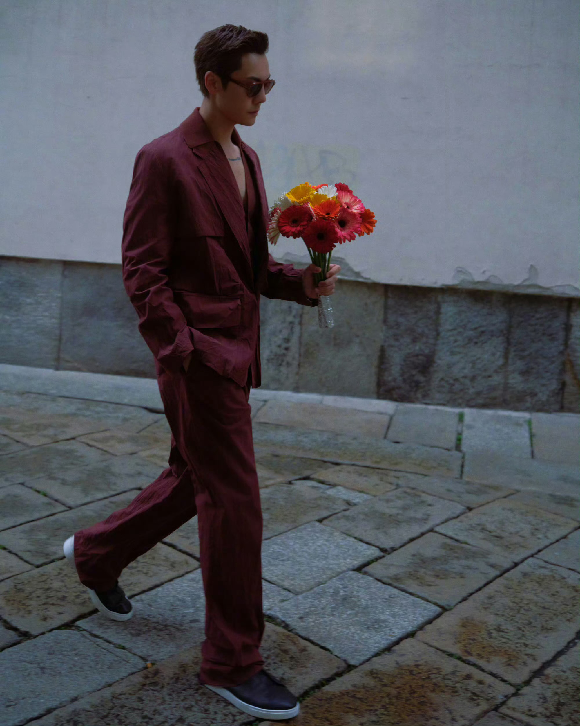 陈伟霆米兰街头大片陈伟霆捧花街头奔跑米兰来信请查收!红西装捧花奔跑,街头大片氛围感绝了