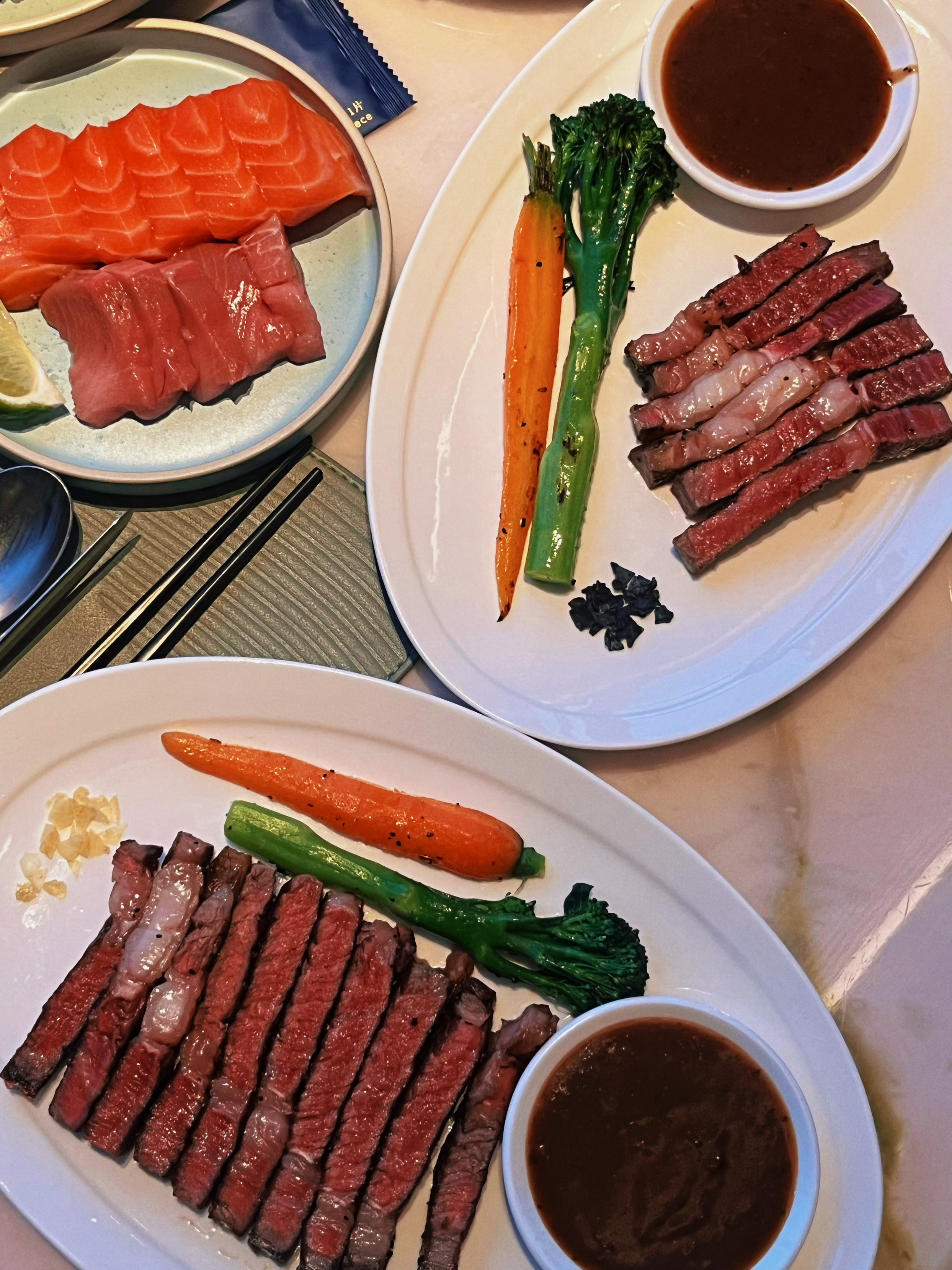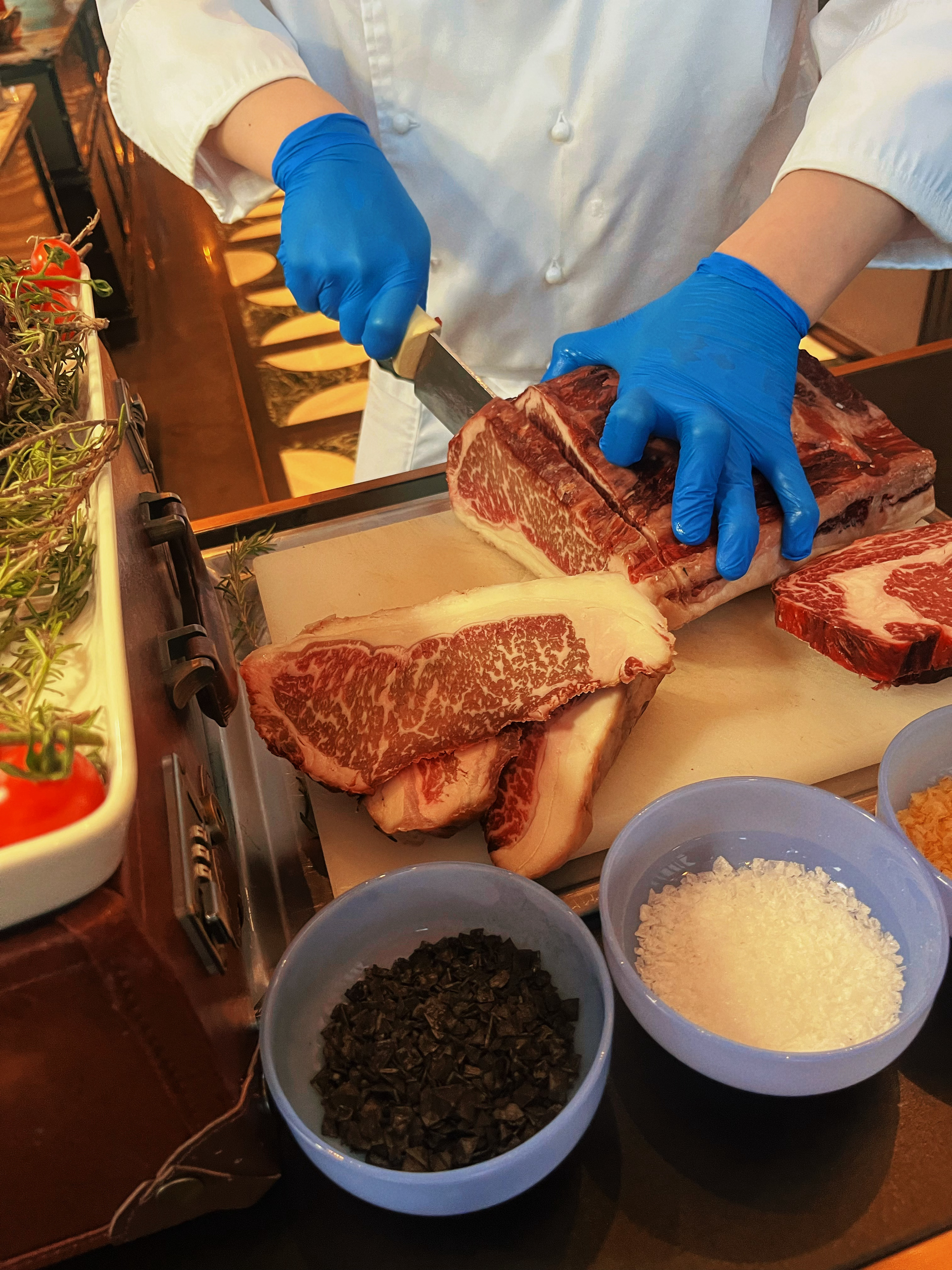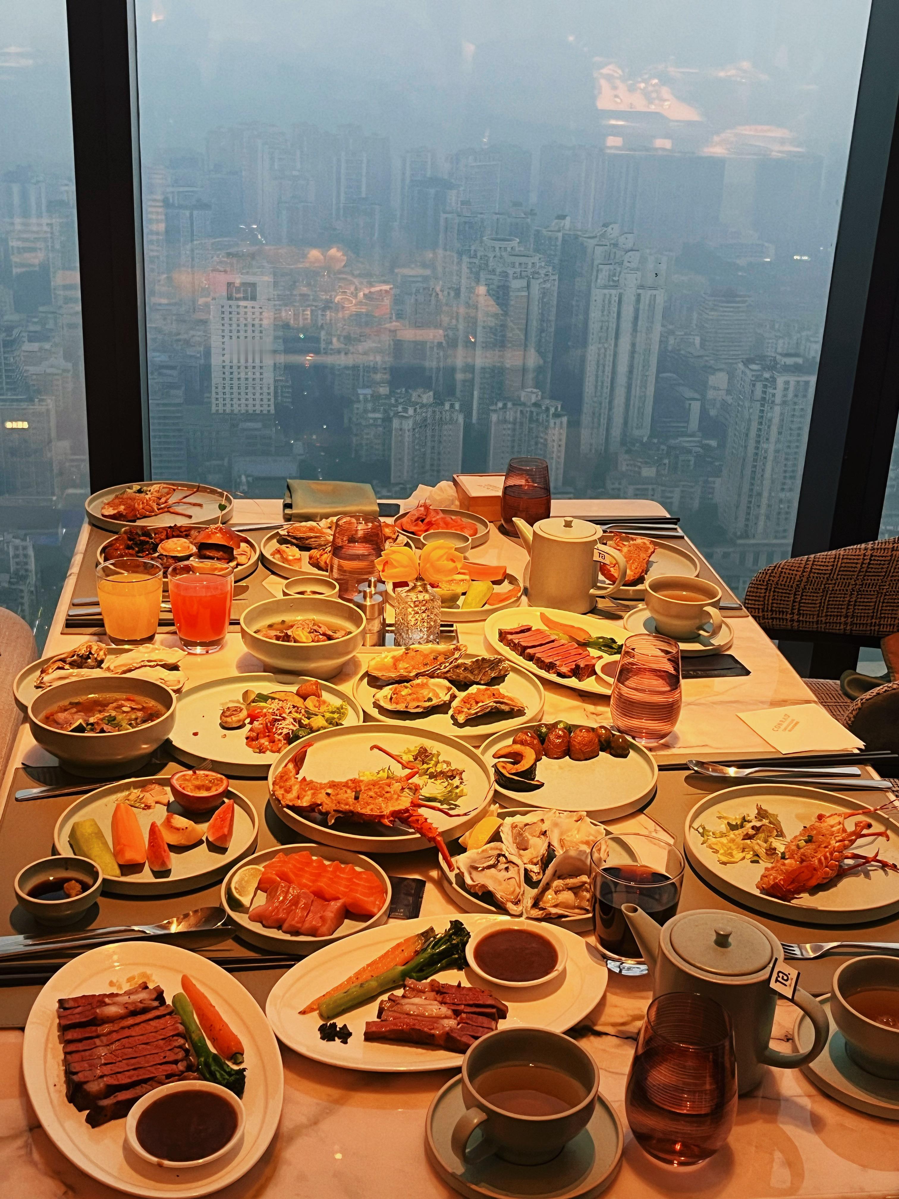 重庆康莱德酒店望峰居云端「峰」味盛宴牛肉主题自助晚餐开启品质美食新体验当美妙的熟成牛肉,活蹦乱跳大波龙,香草战斧牛排,现开生蚝…同时出现在望峰居52楼,就知道今夜的不寻常。全场大明星干式熟成牛排,堂烹,喜欢哪块切哪块。美妙大理石花纹让人沉醉,茹毛饮血的我当然三成熟。肉眼之嫩滑之柔爽,搭配4种有趣的盐,供自由选择。个人推荐迷迭香盐粒,我在消灭最后两口牛肉时蘸取,让味蕾又重燃幸福。六种不同部位的潮汕牛肉档,现点现捞,辣汤、牛肉汤两种可选;餐台还有红酒烩牛舌,煎牛小排,意式烩牛尾…不愧康莱德出品金字招牌,本季牛肉主题自助餐,优异食材和中西滋味碰撞,好味无声。其后,野格与橙汁打底的现调鸡尾酒【龙门浩月】,果甜与酒香交织,是独一份的舌尖飞行。再后,chef将堂烹手工🍦车推将进场,液氮现制,一口沁凉便唤醒了盛夏里的香甜。消费Tips:1.康莱德酒店「峰」味盛宴牛肉主题自助晚餐价格:CNY448元/位。2.推广日期:即日起至2026年3月1日17:30 - 21:30 (每周四至周日)。3.生日聚餐单桌满8人及以上,可尊享主厨定制的桌边甜品秀——以液氮烟雾为舞台,创意甜品惊艳亮相,为食客打造难忘的云端庆生记忆。美食探店美食时刻我的美食日记不可辜负的美食好好吃饭 重庆·重庆康莱德