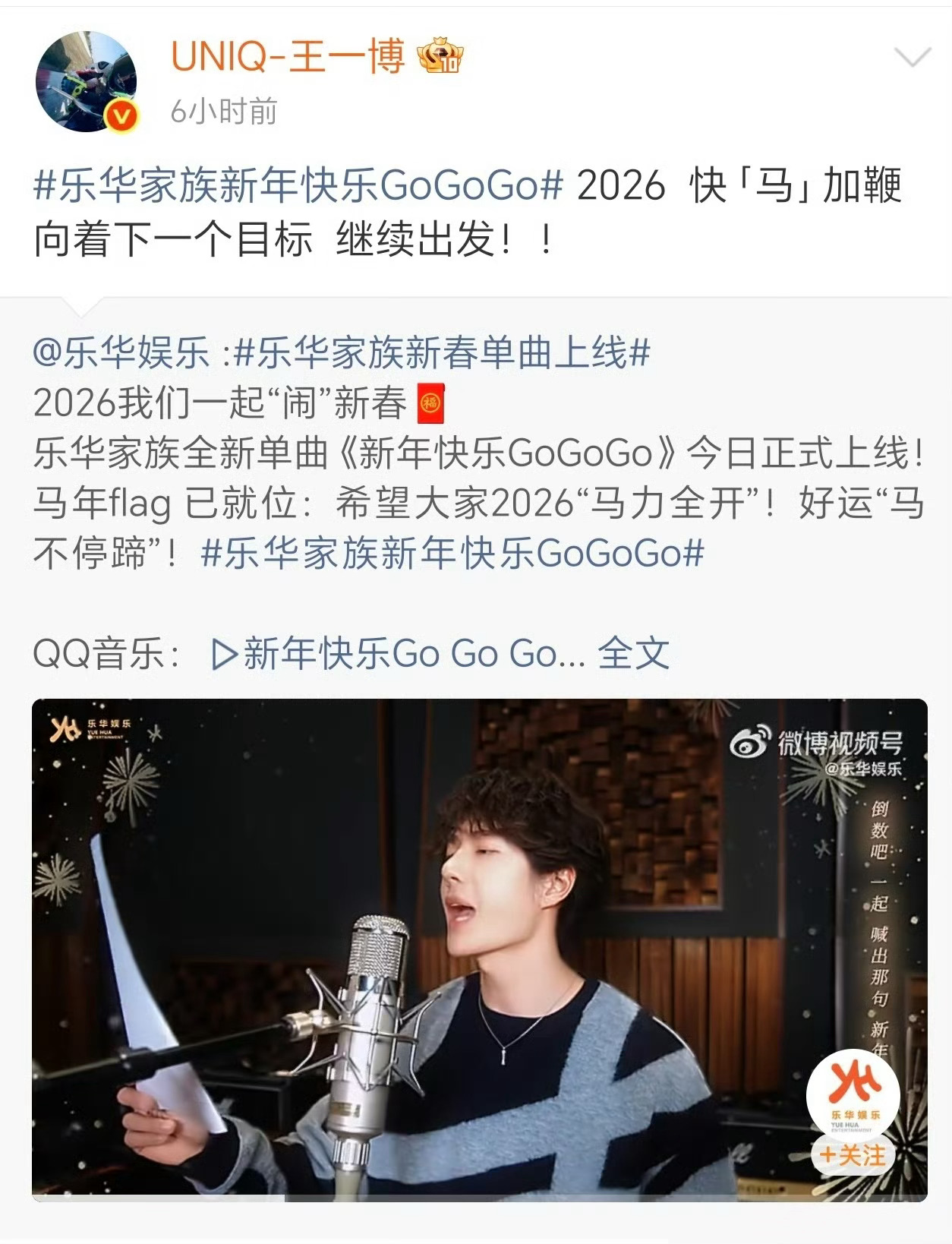 杜华回复王一博 乐华马年flag上线:“向着下一个目标 继续出发!!”杜华评论区留言:“安全第一,期待你的新跨越、新提升!”