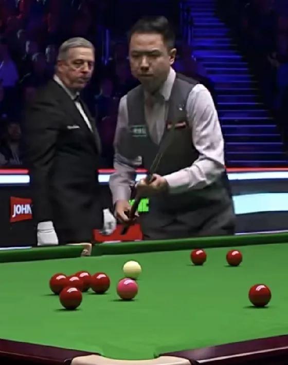 第三局,吴宜泽又赢得先机,上手得42分,母球走位偏差,强攻底袋失误。 肖国栋上手仅拿7分,母球失位转防守。 吴宜泽又一杆长台准进二度上手,只打一红一彩后,攻红球中袋母球摔入顶袋。 肖国栋手摆球进攻上手,拿33分,母球K库边球不果又转防守。比分40-50暂时落后。 一杆防守反击,肖国栋长台攻红球底袋不进漏球。 吴宜泽三度上手,一杆致胜,以83-40再赢一局,比分3-0领先,优势进步扩大。
