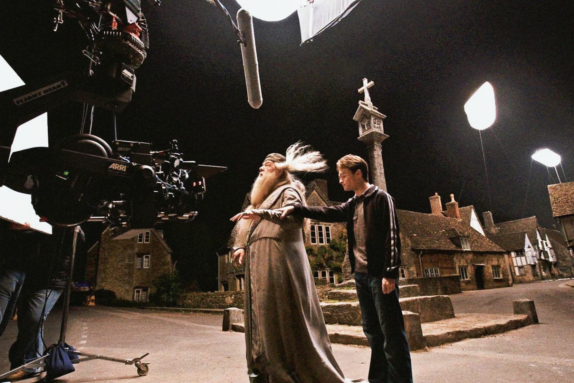 哈利波特搭乘花絮去幕后 预备,幻影移形,Go!【哈利·波特与混血王子】片场,搭建在棚内的麻瓜小镇,斯拉格·霍恩教授隐藏自己的所在地——迈克尔·刚本“邓布利多”正带着丹尼尔·雷德克里夫“哈利”将要移形换影~哈利波特
