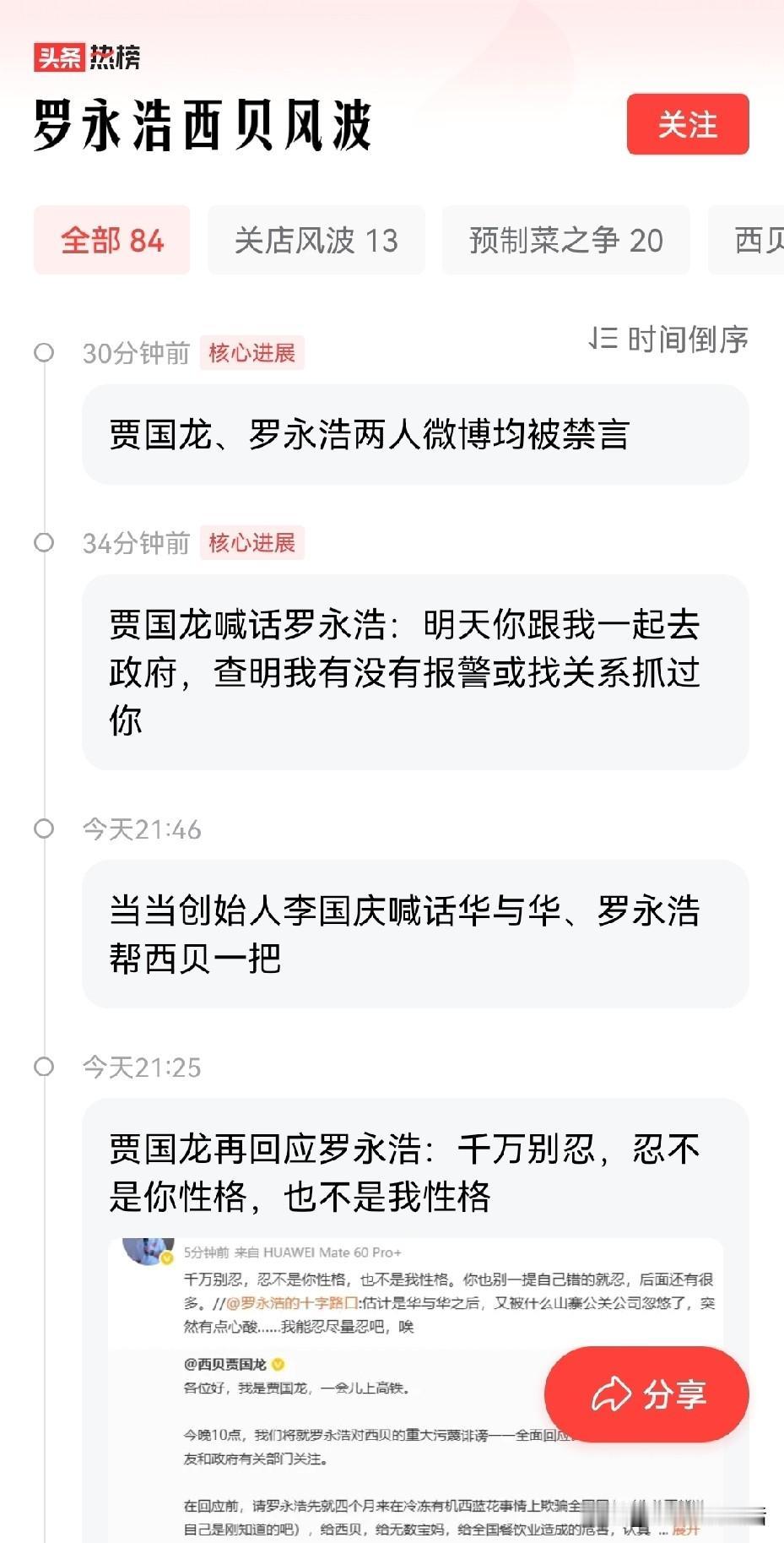 贾国龙约战罗永浩还没开始就结束了! 眼瞅着到晚上10点了,结果微博直接让两个人熄灯睡觉了! 估计这会两个人都蓄势待发,正急得团团转吧,贾国龙更是因为西贝的事正有火妹处发呢,这下没法和罗永浩隔空喊话了,乐趣一下就没了。 搞不明白两个人也没违规,为何就给禁了呢? 难道是怕他们吵的太激烈,没法收场吗? 贾老板作为西北的硬汉代表,这火爆脾气上来了,估计谁劝也不好使了,大战一触即发。