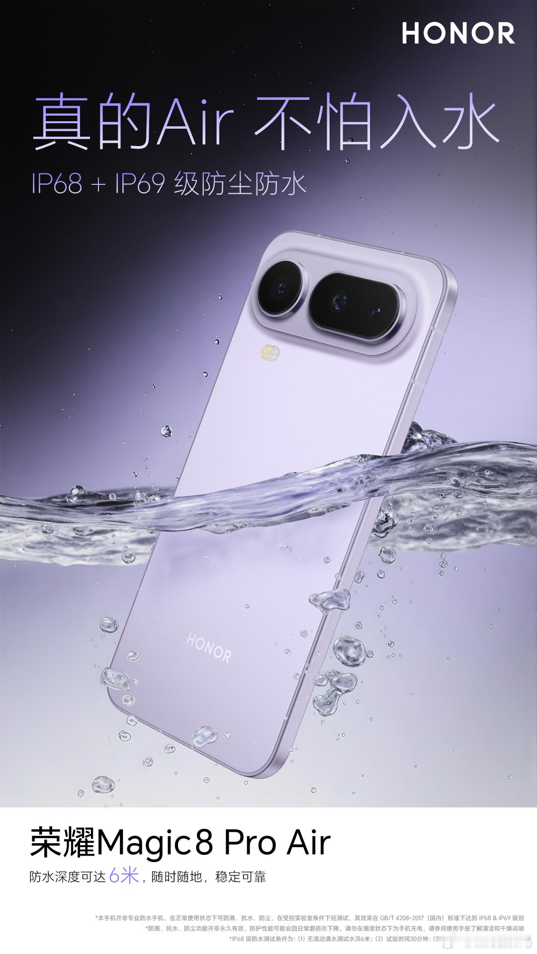 荣耀 Air 这次搭配了 eSIM+实体SIM四卡双待、IP68&IP69满级防尘防水、自研高强7系铝中框、立体双扬声器,把 Air 要遇到的短板通通解决掉,做出了既 pro 又 Air 的效果,不得不说荣耀这次是真的用心了。荣耀Magic8 Pro Air