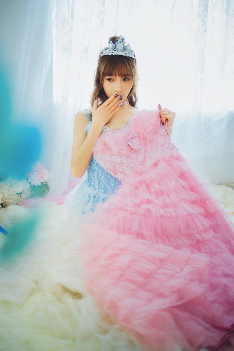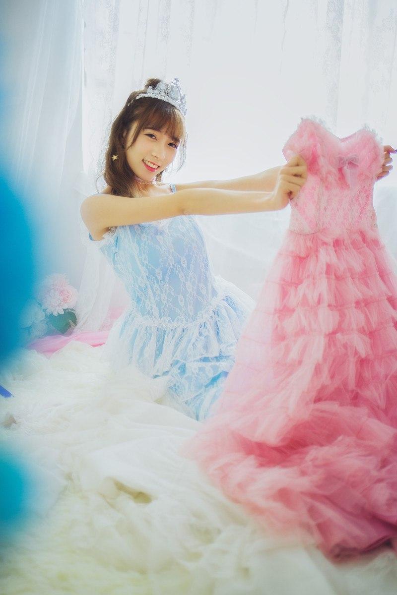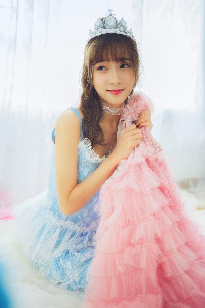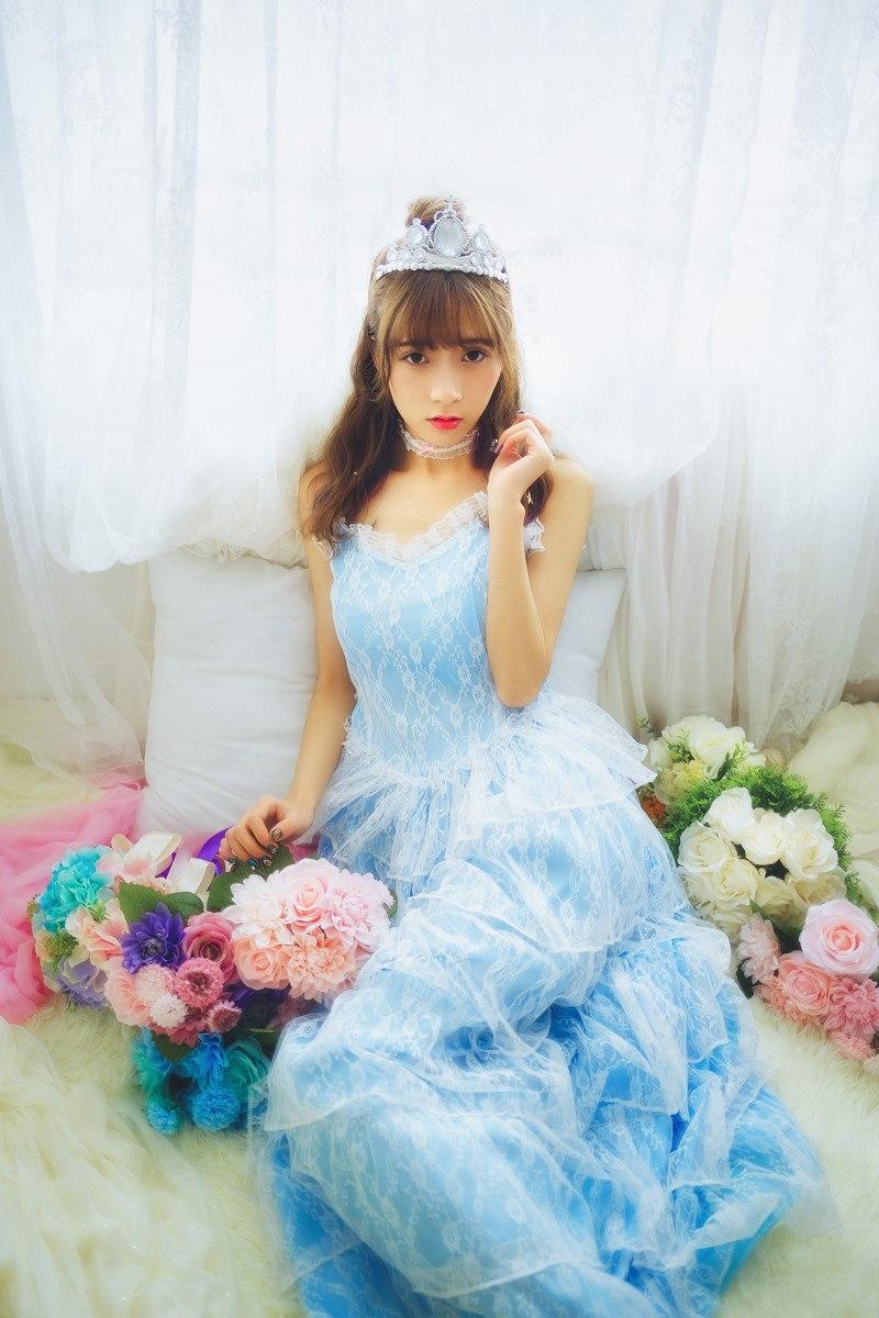 梦幻公主风浅蓝色蕾丝裙优雅头饰甜美自拍梦幻 公主 美少女 梦幻婚纱公主照