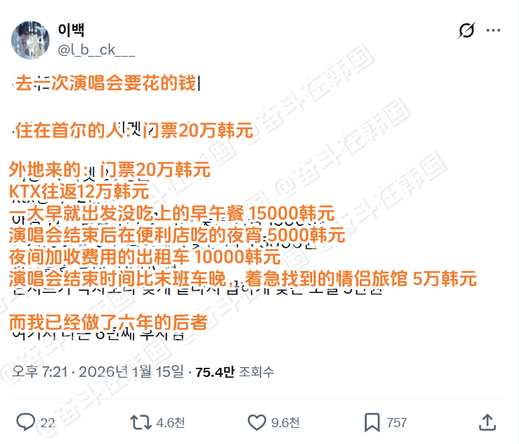 韩国首尔人和外地人看演唱会的追星账单 海外新鲜事热点现场