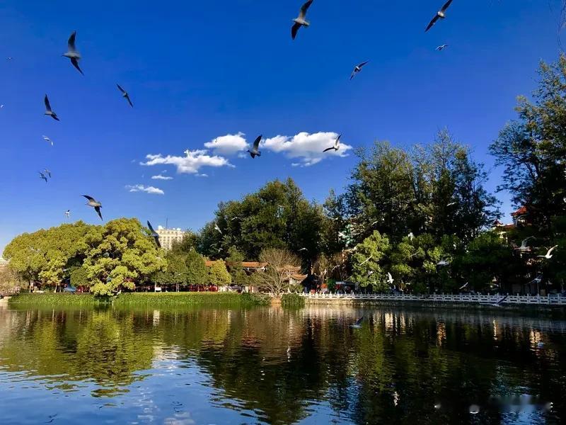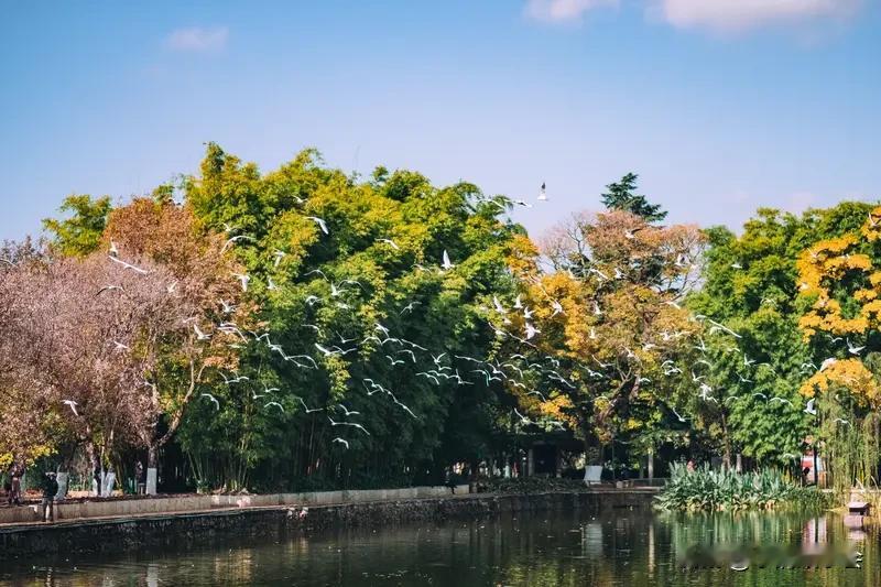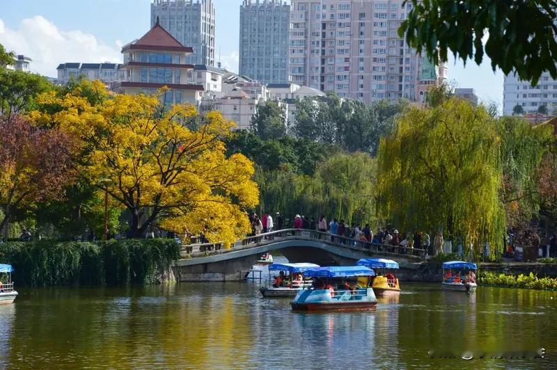 昆明翠湖城市绿道简直太火了,每天都游人如织。这条全长约620米的绿道南起人民路过街天桥,北至黄公东街市政公园,彻底解决了过去从昆明老街到翠湖公园路线复杂的困扰。 有了它,游客逛完昆明老街能直接轻松走到翠湖。而且它还串联起了云南解放纪念馆等多个景点,实现“一站式”畅游。走在轻质的架空栈道上,脚下是透明玻璃,仿佛悬浮空中,一边赏人民中路繁华,一边感受微风。现在蓝花榉盛开,黄公东街被紫色花朵装点得美轮美奂。这条绿道不仅是交通要道,更是串联昆明百年人文的“文化纽带”。