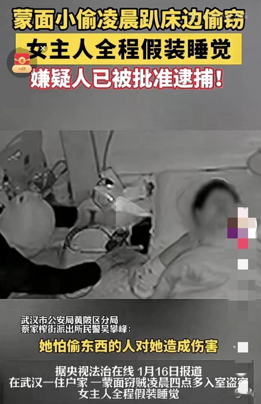 这个臣妾真做不到啊! 近日武汉一住户家,凌晨4点多,女主人正在睡觉。 她就感觉异样,睁眼一看,她就见一蒙面人正在翻她的床头柜,直觉告诉她这是进贼了。 直觉又告诉她,她不能动,也不能醒,为了自己的安全。 于是她假装翻了个身继续睡,估计心也跳到了嗓子眼了。 待蒙面贼得手走出去后,这个女主人马上报了警,这个贼已被逮捕到案了。 不得不夸一下这个女主是真高啊。就这一点,我是真做不到啊。 这要换做我,早嗷一嗓子跳起来了。反正不把小偷吓死,我自己也吓死了。 我就想起发小杀害妻子孩子4人那个案例了。假如她妻子也就这么装睡,估计也不能没命。 留得青山在,不怕没柴烧,只要人活着,钱财那都是身外之物。 学着点吧,要临危不惧,处变不惊。