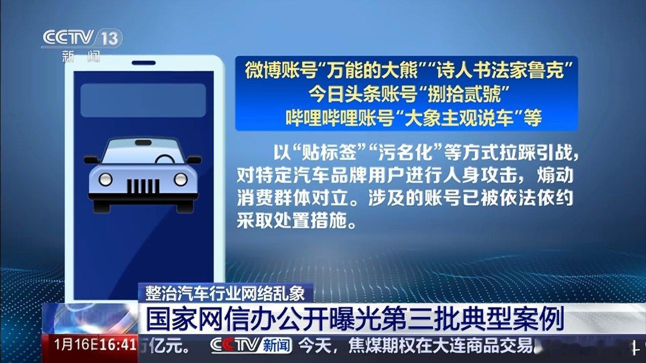 上了几次央视了,这排面是真的可以,我就关心什么永封?一批持续贬损汽车行业账号被处置万能的大熊等账号被依法依约处置汽车行业网络乱象专项整治