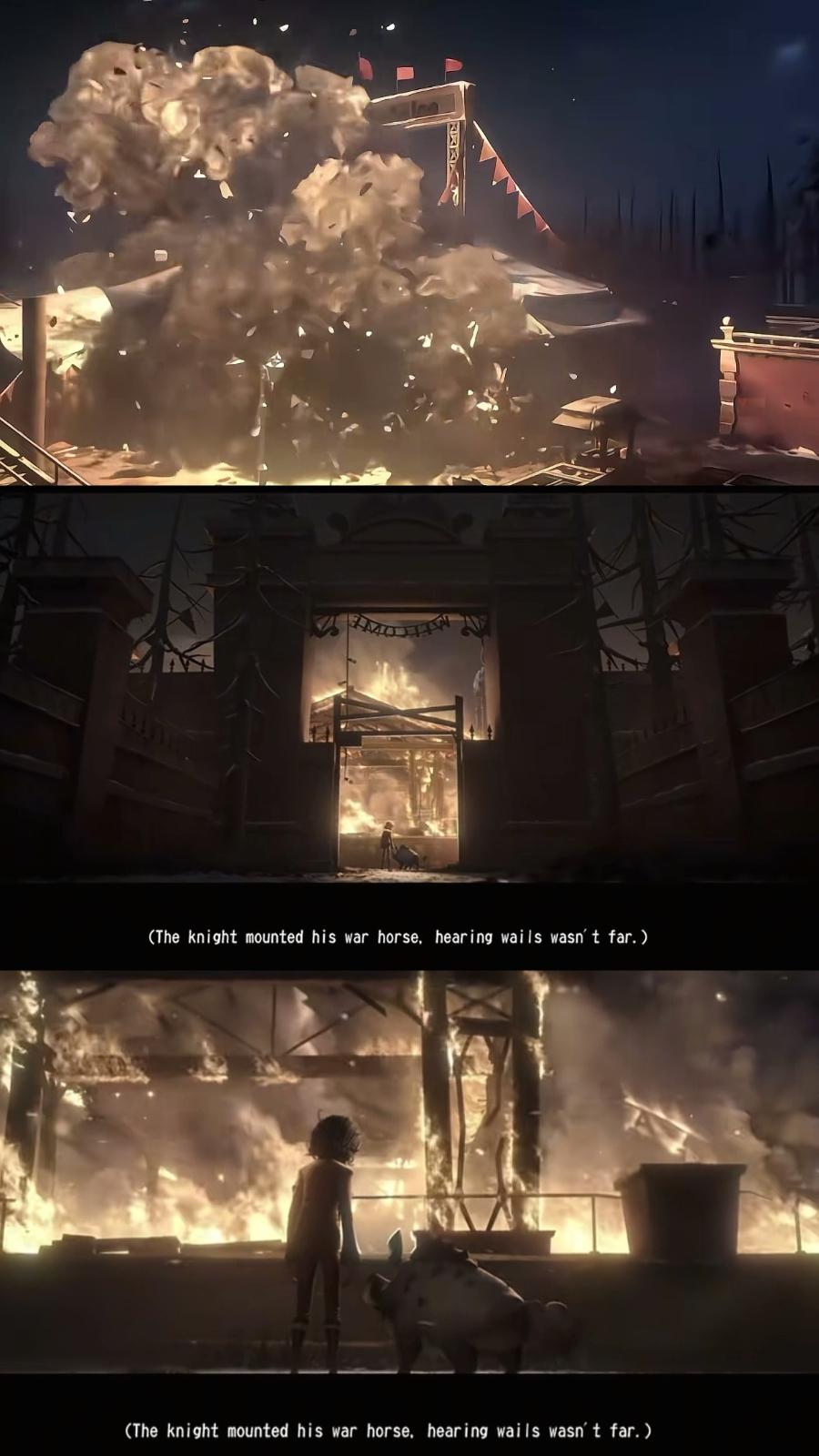 喜剧的内核是悲剧。笫一个孩子冻死在了冰天雪地 第二个孩子跳入了湍急的河流 第三个孩子为了第二个孩子殉情 第四个孩子陷入了崩溃用爆弹完成了自己的终场演出 只有第五个孩子活了下来。 骗你的,第五个孩子死在了下一场游戏中 至此,喧嚣落幕