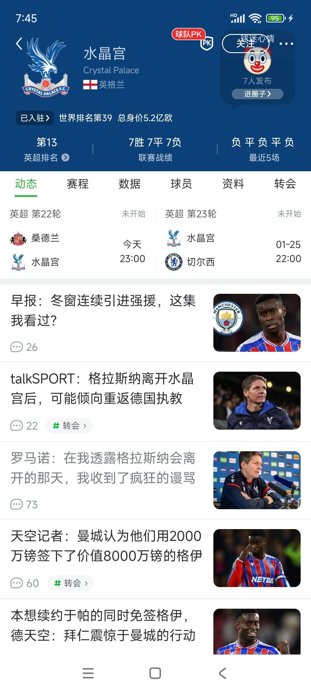 英超第13名水晶宫危险了,今天队长被挖走,主教练也说不续约要走。 本来水晶宫是英超普通球队,还能混混日子,上赛季足总杯决赛击败曼城,然后社区盾决赛击败利物浦,拿到2个小冠军。 从此主教练,队长被盯上,挖走了。 自己转会也没做好,未来降级可能性很大。 小球队真的不要拿冠军,更不要击败豪门,一旦表现好会被挖空,水晶宫就是例子。[可怜]