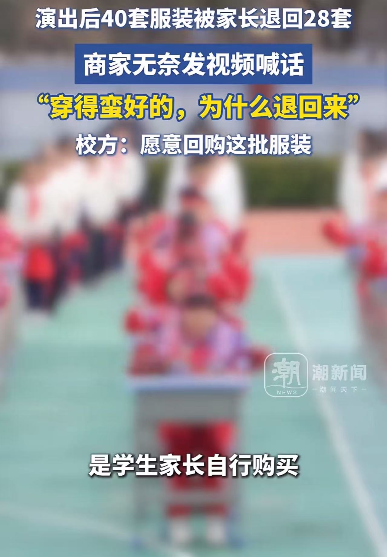 “这才是学校该有的样子!”元旦学校演出后,28套演出服装被家长退回,商家无奈发视频喊话:“穿都穿过了,怎么能退回来?”学校:“家长行为与学校无关,学校愿意回购这批服装……”