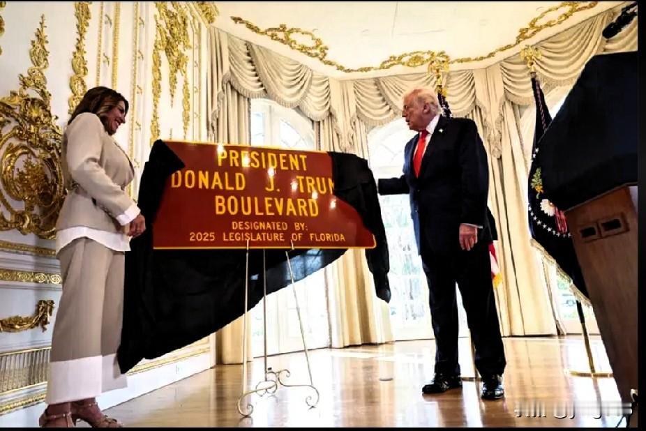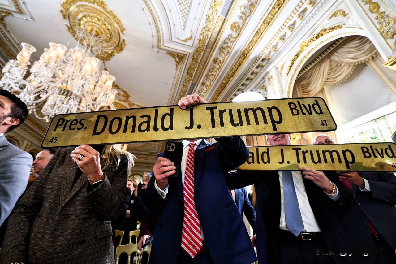 华盛顿——总统们通常要等到离开白宫或去世后,才会获得以自己名字命名的街道和建筑。 肯尼迪中心刚刚以他的名字重新命名,特朗普又获得了一项新的命名权:佛罗里达州棕榈滩南部大道一段长达4英里的路段,现在被称为“唐纳德·J·特朗普总统大道”。 1月16日,特朗普出席了在他位于棕榈滩的海湖庄园举行的仪式,正式宣布佛罗里达州政府更改了街道名称“这是一个重要的信号,”特朗普在即将安装在街道上的大型路牌前摆姿势拍照时说道。特朗普别墅
