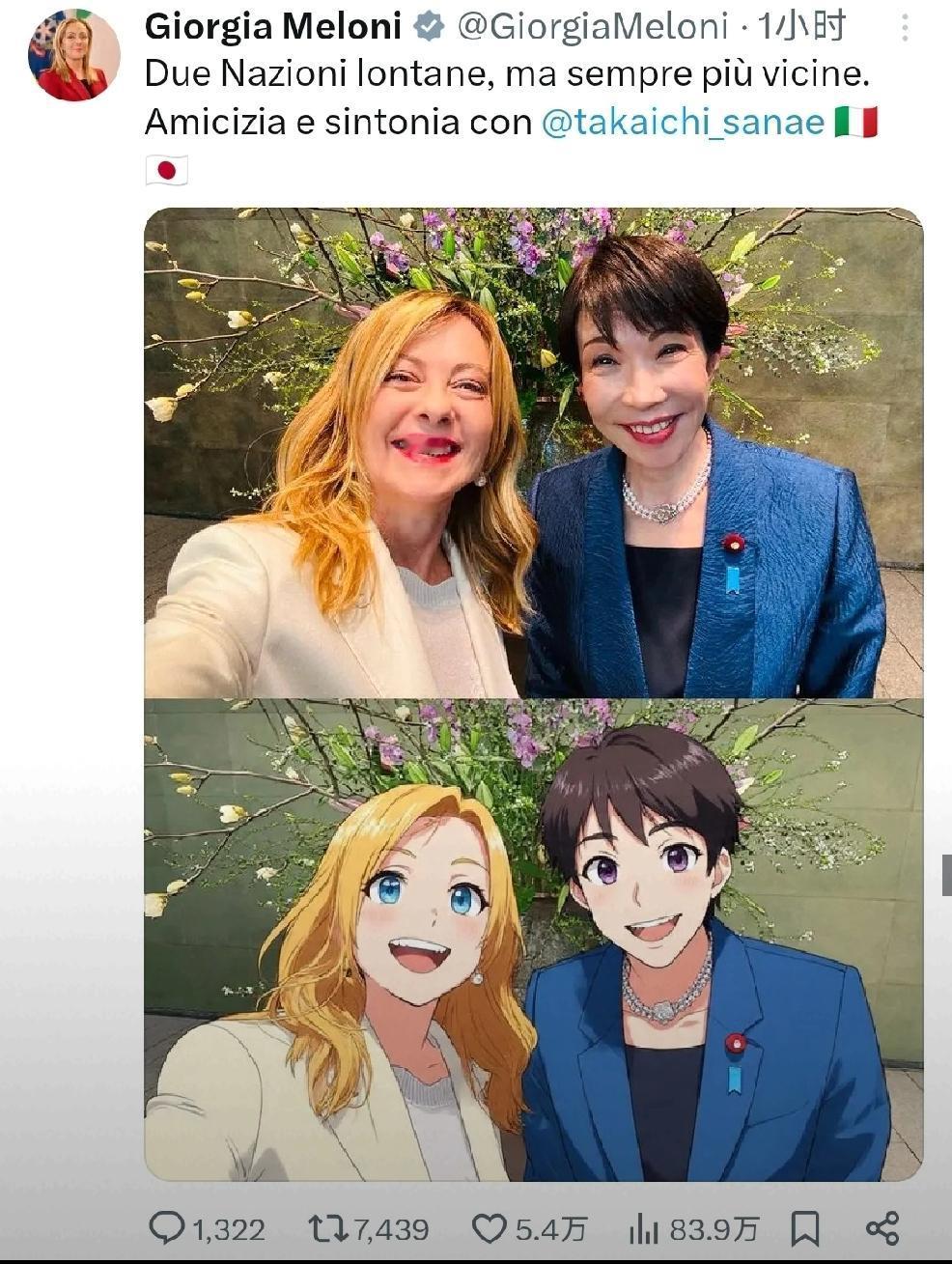 谢谢意大利,给世界呈现了名场面 根据直新闻报道:意大利总理梅洛尼访问日本,在日本当前执政者举行的迎接仪式上,向国旗鞠躬。 个人认为:感谢意大利总理梅洛尼给世界呈现名场面,让个人知道,原来一国之总理是如此轻飘飘的鞠躬,果然是民选总理。 日本是二战战败国,意大利也是二战战败国。