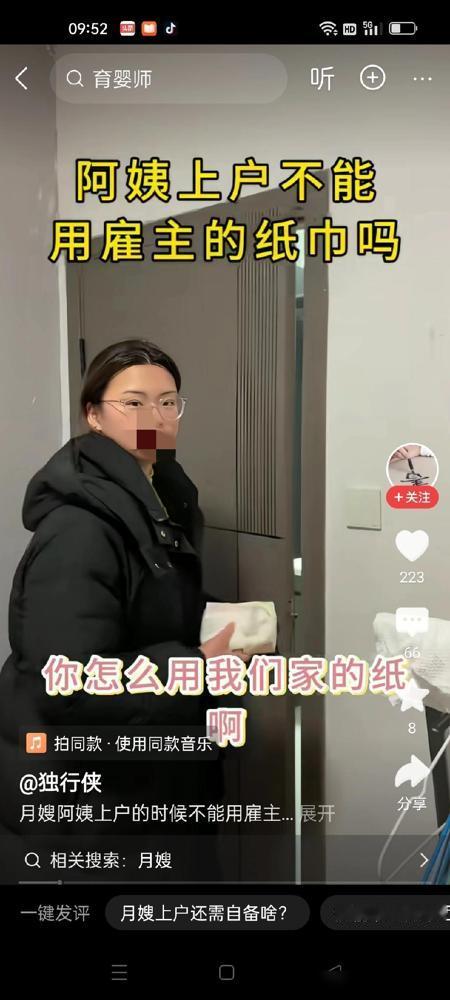 雇主看到保姆拿了一盒卫生纸去上厕所,就问她,你怎么用我们的纸啊? 谁能想到,就因为这一抽纸,保姆当场就直接甩脸子辞职不干了。事情其实很简单,保姆当时内急想用家里的卫生纸,结果被雇主拦住,非得让她自己下楼买一包回来。 我觉得这已经不是省不省钱的问题了,这种极致的边界感,多少让人有点脊背发凉。在同一个屋檐下生活,连人有三急的时候都不能通融一下,这确实挺难受的。 虽然雇主觉得“上户自备用品”是规矩,但保姆当时都开口求助说先救个急了。雇主那种“你现在就下去买”的强硬,直接把人与人之间那点基本的体恤给磨没了。 保姆最后把纸一扔选择走人,估计心里想的是:我是在这儿干活,又不是在这儿当假人。这种被当成“外人”防贼一样的感觉,可能才是压死骆驼的最后一根稻草。 其实这种算计挺没必要的。雇主可能觉得维护了利益,但最后落得个没人干活、自己摇头的局面,重新找人的时间成本和精力,难道不比一盒纸贵吗? 我总觉得,家政服务虽然是雇佣关系,但本质上还是人跟人在相处。如果把账算得太死,一点人情味都不留,那这日子过起来也挺累心的。 这种所谓的“坚持原则”,有时候反而是感情和效率的杀手。说到底,太计较小利的人,往往最后都要吃大亏。