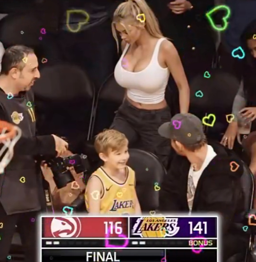 湖人上一场大胜老鹰,场边惊现一位丰满女郎
